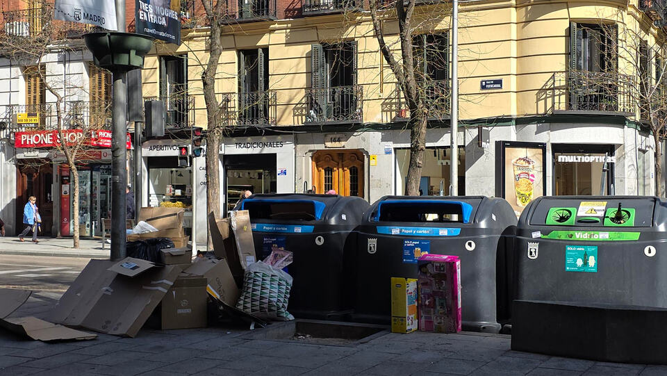 Yo lo que estoy viendo últimamente es que el que suele estar lleno (y a veces ni eso) es el de cartón, lo que hace que se acumulen cajas de todo tipo alrededor. También puede ser que los sin techo los saque buscando alguno de su agrado y luego dejen todo tirado.
