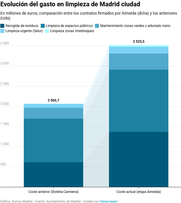 Hay una descompensación bastante grande entre unos servicios y otros. Hay calles en mi barrio, por ejemplo, por las que pasan a baldear 5 veces/semana. Que para la Gran Via pues estará bien pero para calles residenciales me parece excesivo. Ahora dicen que van a recoger envases todos los días de la semana, cuando nunca ha habido problema con el calendario actual, al menos en mi zona.