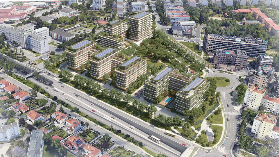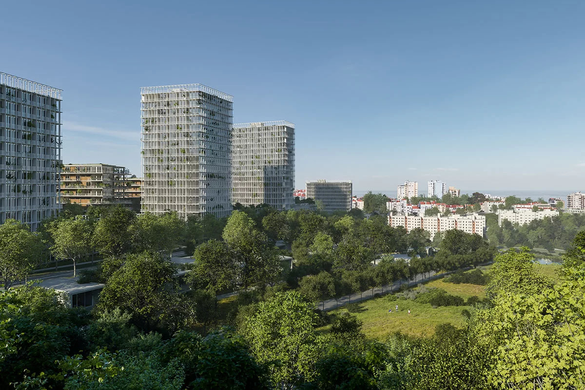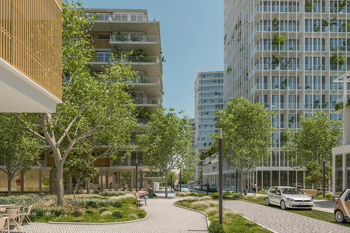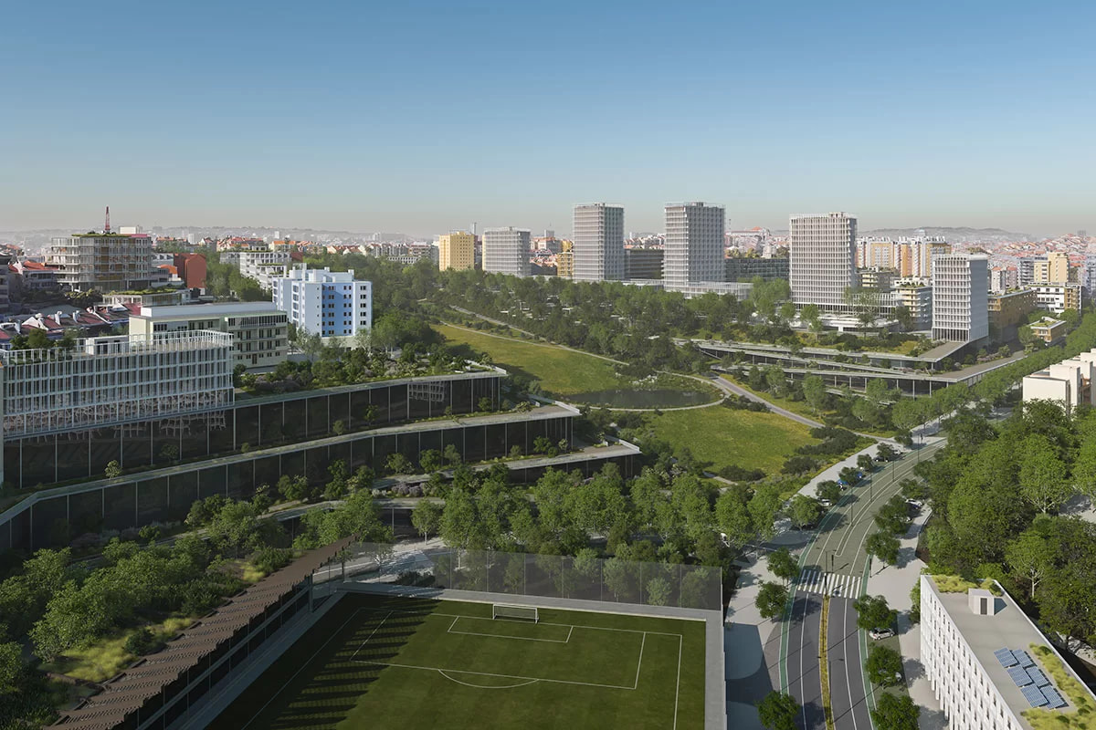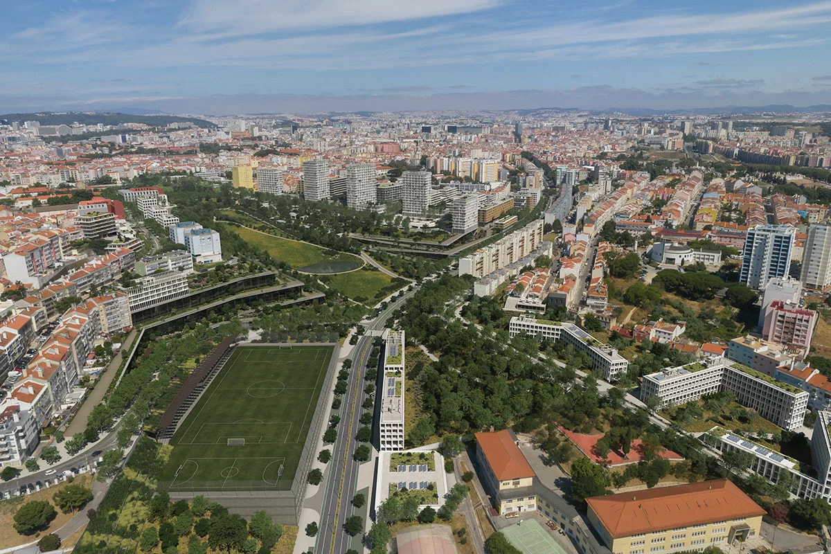 Bensaúde Lisboa aborda el desarrollo de un nuevo conjunto residencial de gran escala en la ciudad de Lisboa, concebido como una operación urbana contemporánea que combina vivienda, espacios libres y servicios, en continuidad con el tejido urbano existente. El proyecto alcanza una superficie construida aproximada de 40.000–45.000 m² y alberga cerca de 900 unidades residenciales, que combinan vivienda en alquiler, residencia de estudiantes y co-living en un único ámbito urbano integrado.