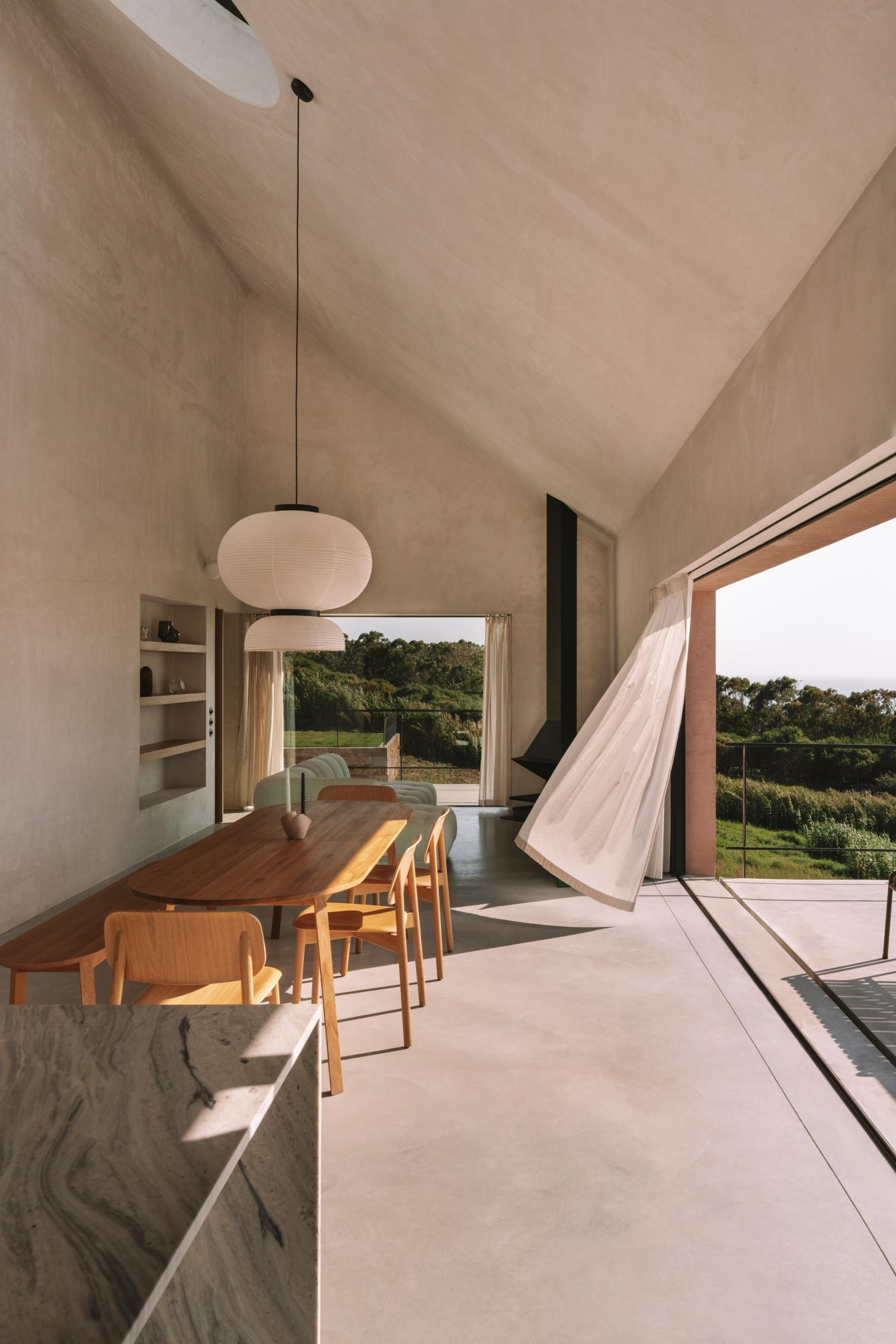 En un terreno pequeño, estrecho y con fuerte pendiente junto al mar, cerca de Lourinhã —un pueblo situado a una hora al norte de Lisboa— se implanta esta vivienda unifamiliar. El proyecto parte de una forma radicalmente simple, que reinterpreta elementos presentes en la arquitectura histórica local.