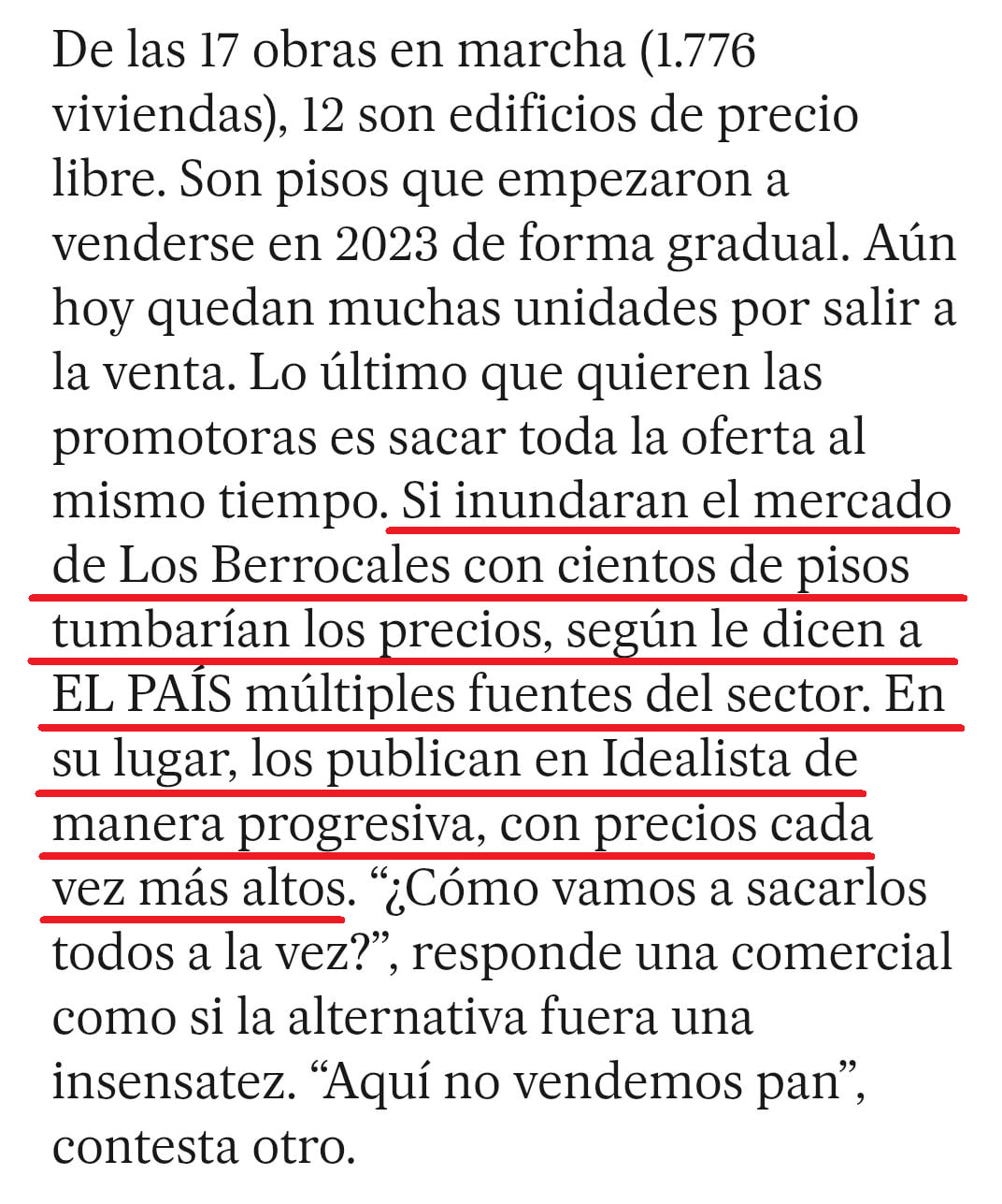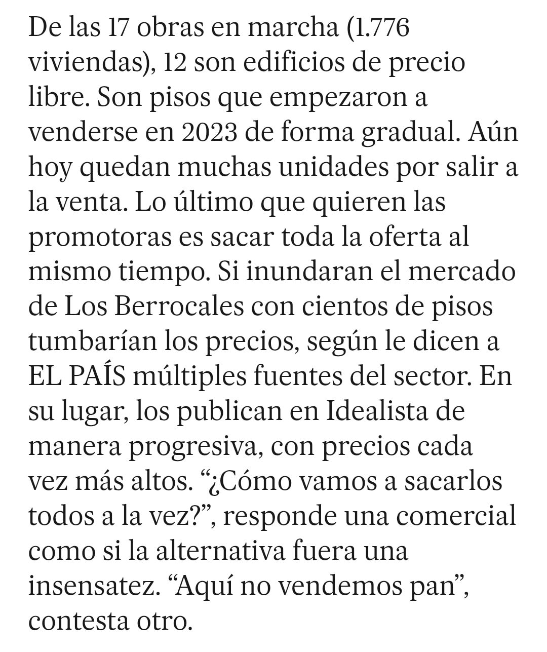 Cesteros es un jurista vallisoletano de 52 años con aire profesoral. Explica por qué “construir es muy caro”. Los precios en Los Berrocales se ven influidos por el alza de los materiales de construcción, la falta de mano de obra cualificada o el coste de urbanizar el barrio. Estima que un promotor no puede bajar el precio de su piso de 180.000 euros, si quiere recuperar lo que se ha gastado en edificar.