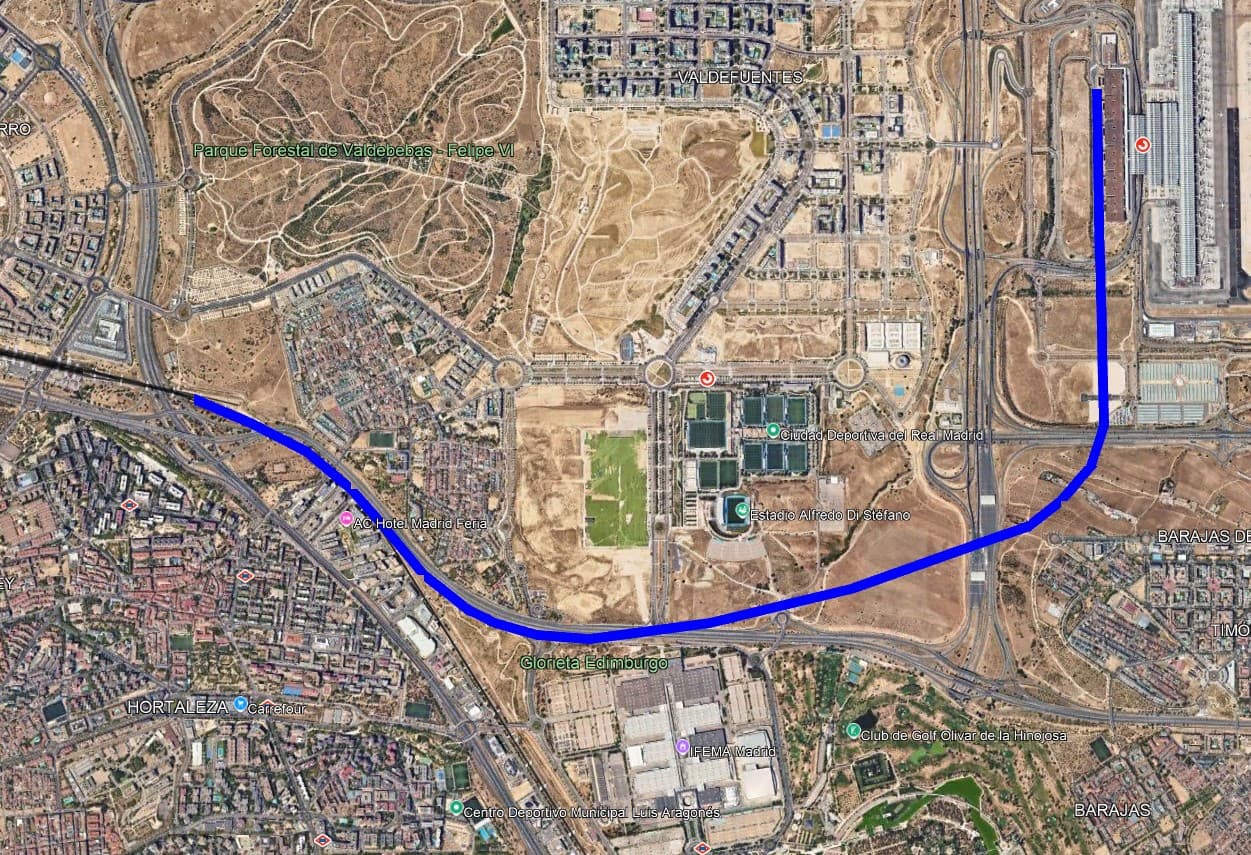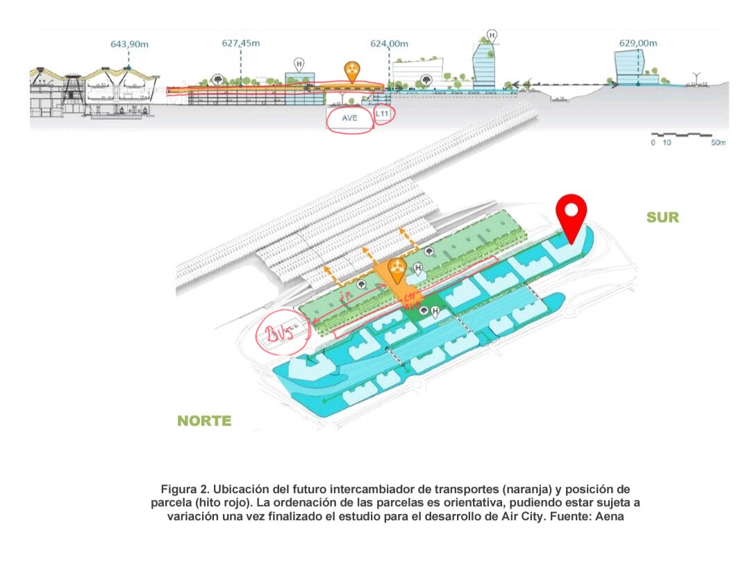 Creo que es exactamente ahí, a la izquierda de los parkings, donde está planeada. A la derecha AV y a la izquierda Metro Línea “11”