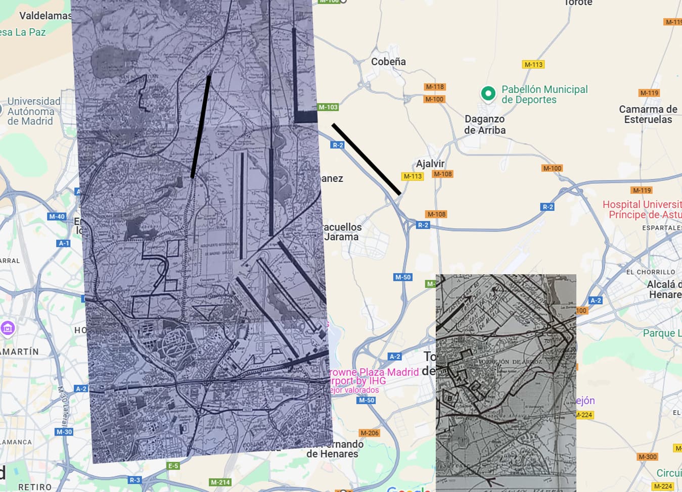 ¿Veis la diferencia entre ser un experto desde antesdeayer y serlo pero de verdad y desde hace 40 años…?. En uno de estos planos no aparece ni la T-4 ni absolutamente nada de nada porque debe tener cerca de 30 años, y en el otro la M-50 todavia estaba en construccion… , JE JE JE…