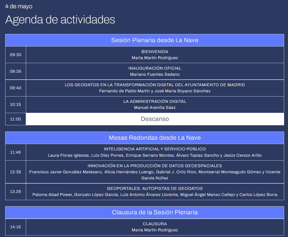 Agenda de las Jornadas de Geodatos que comienzan mañana: