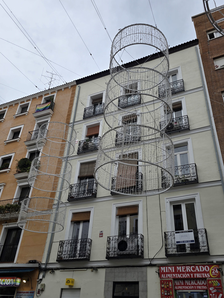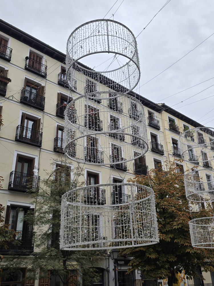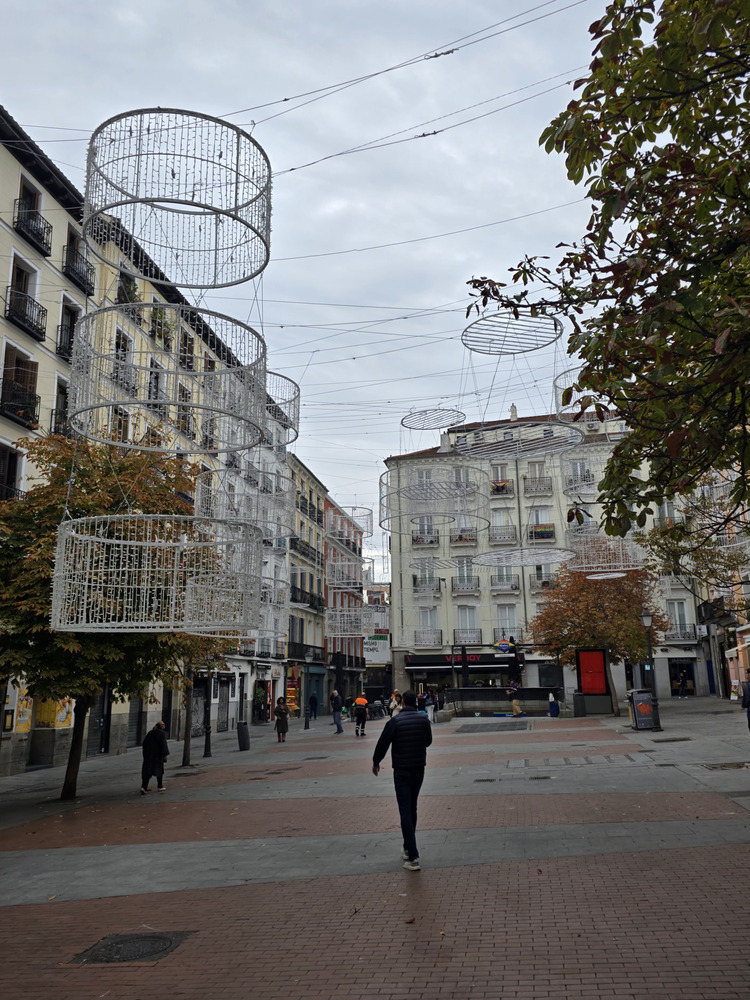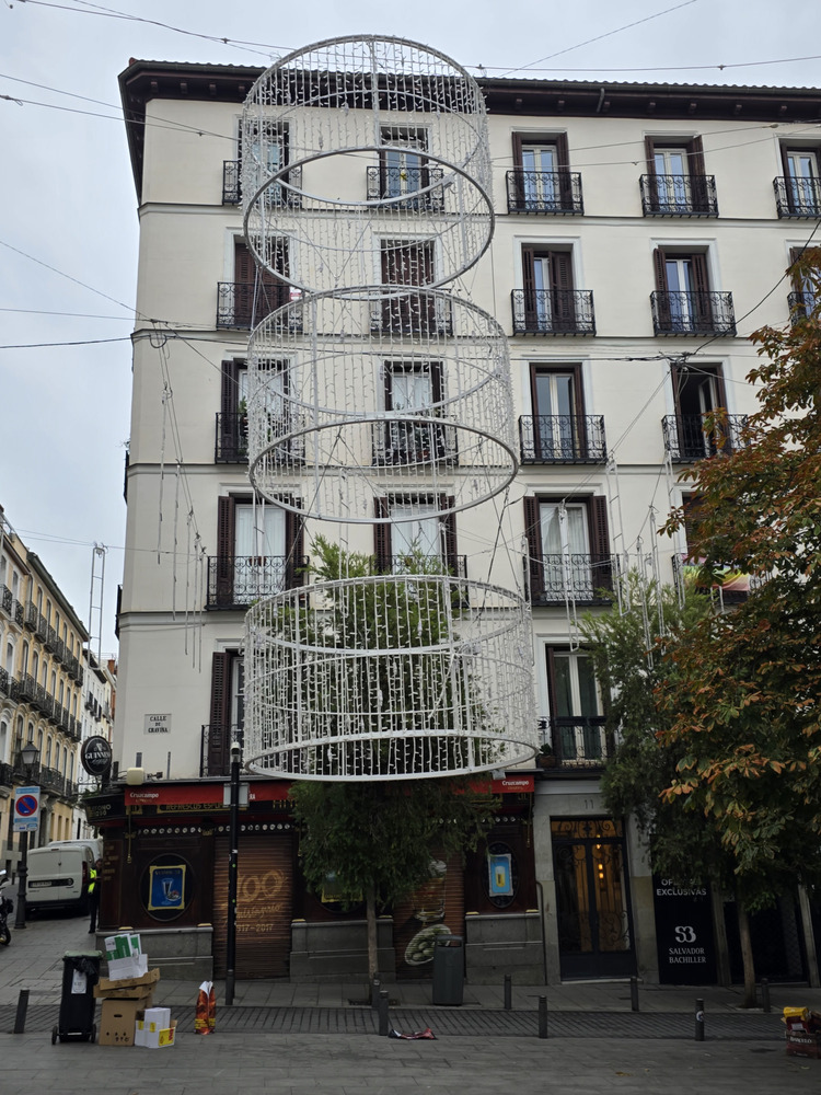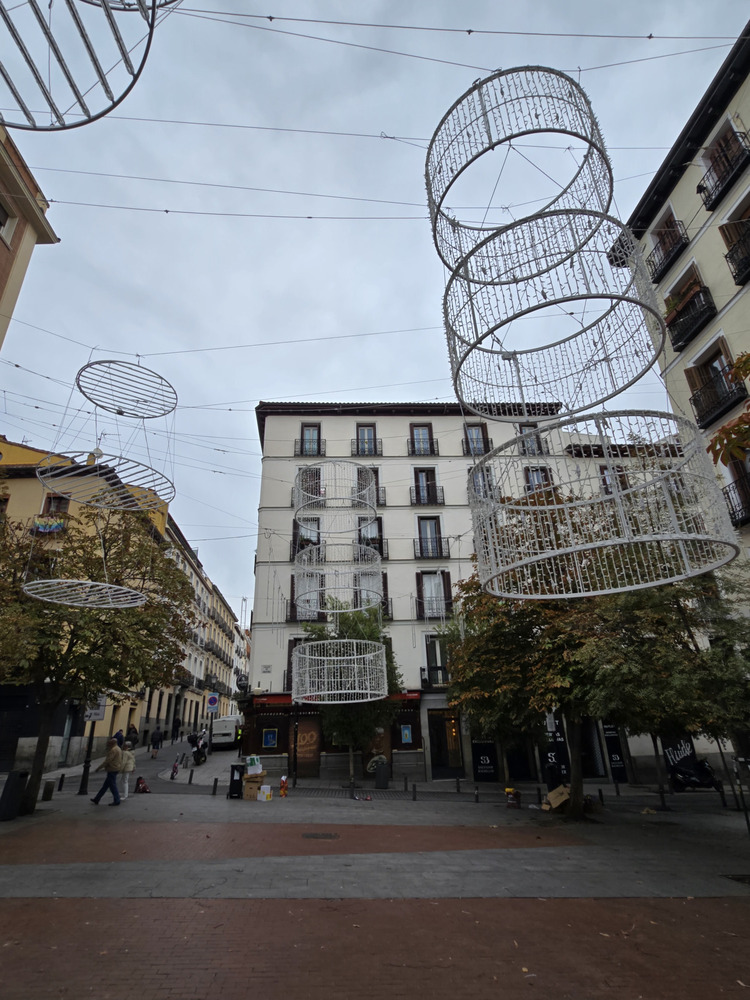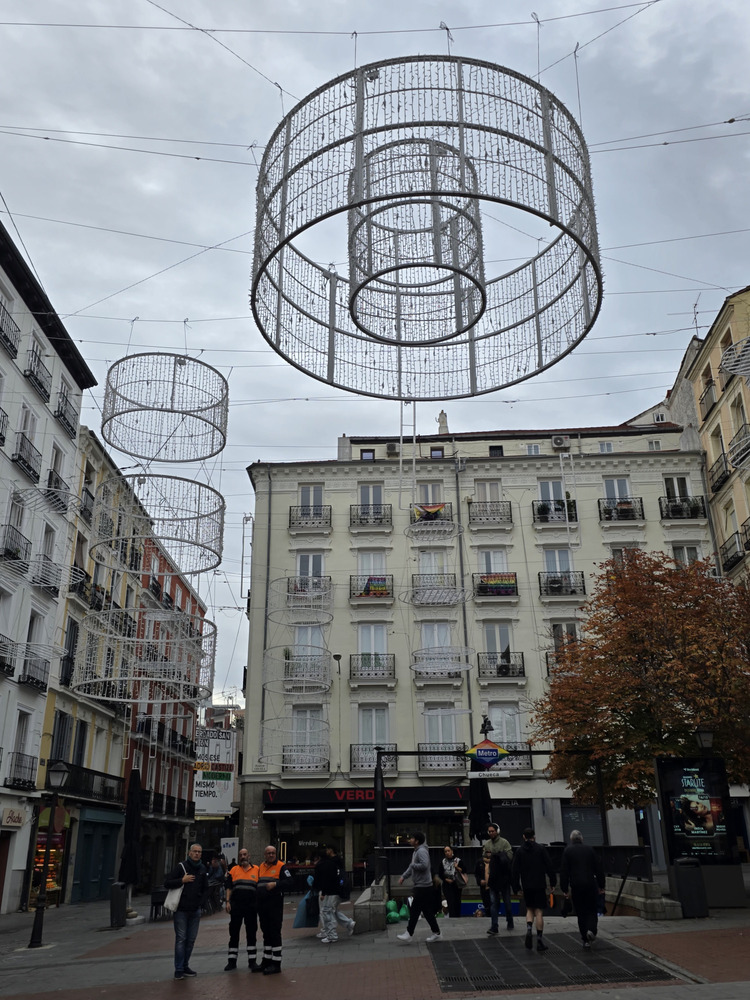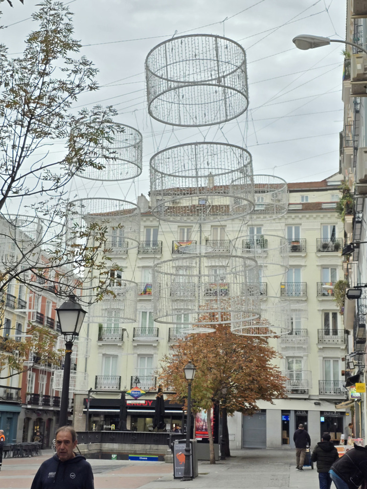 Creo que no se ha comentado (y si es así, perdón por repetirme), pero diría que una novedad de este año es el tramo de Alcalá entre Cibeles e Independencia. Estaban iluminando los árboles con bombillitas LED pequeñas (espero que de luz cálida) y no se veía la maraña de cables habitual para la iluminación caótica de otros años, si no me equivoco.