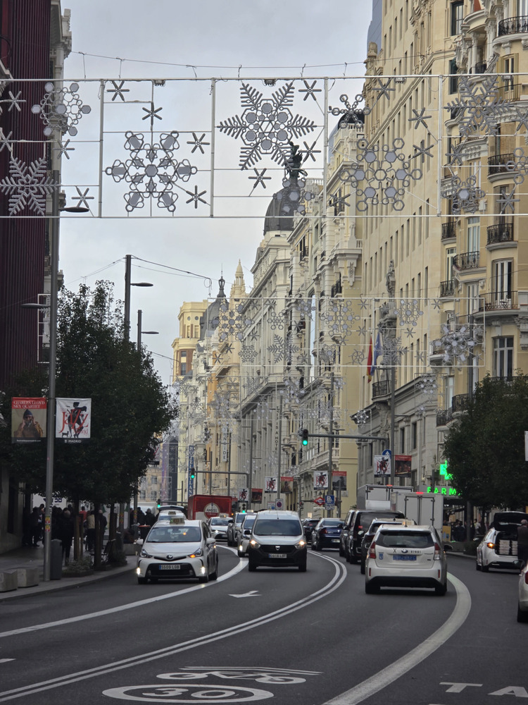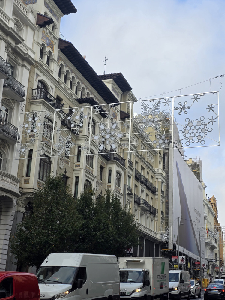 Yo sigo pensando que Gran vía se merece algo mas espectacular tipo calle Larios de Málaga y no unos simples copos de nieve al nivel de cualquier otra calle de Madrid…