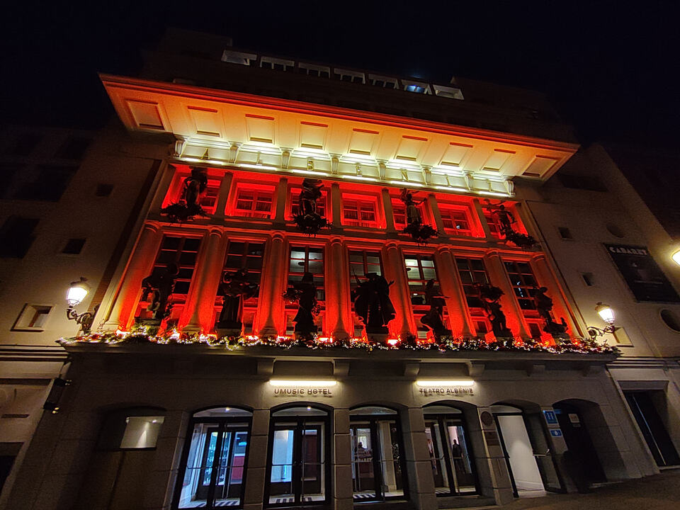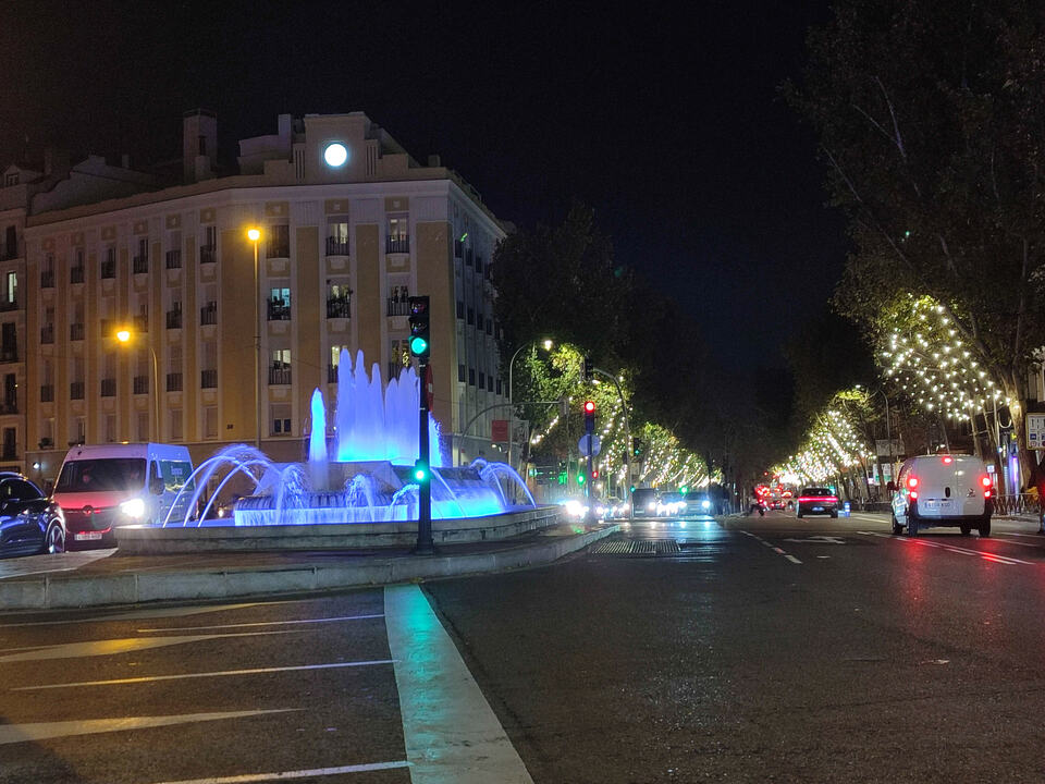 Y han puesto esta otra en el perfil de X del periódico Puerta de Madrid, parece que van cambiando de color y tienen efecto copos de nieve: