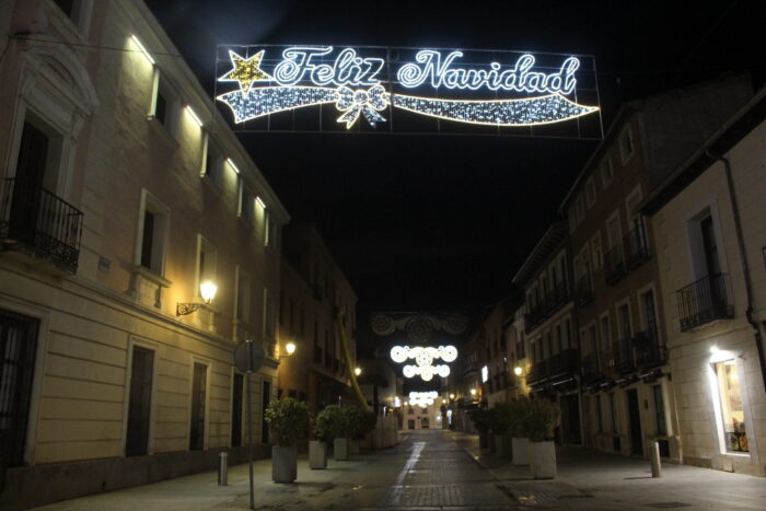 En Alcalá este año han puesto un guiño a la ciudad en las luces de la Calle Libreros.