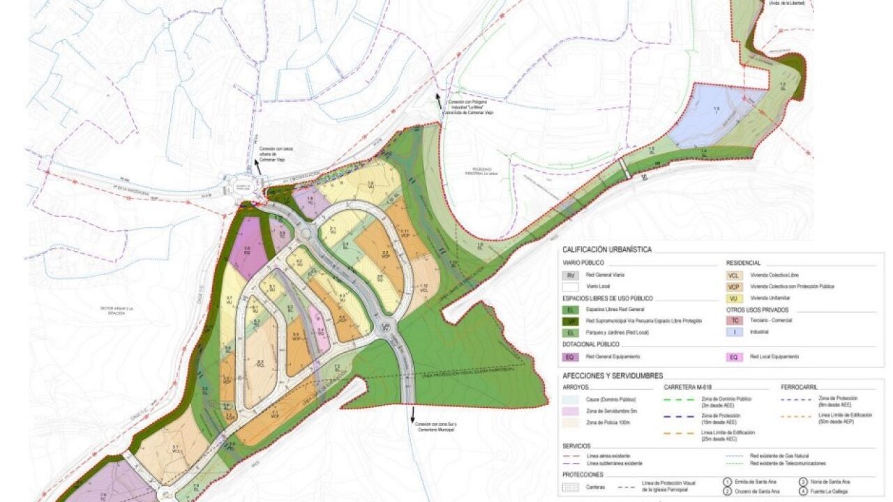 Por ejemplo… ¿no podrían planear una nueva ordenación ¡con las mismas viviendas! pero cambiando de modelo (de unifamilares con jardín a bloques residenciales bajos con jardín), ocupando mucho menos espacio, sin hacer tanto viario, respetando todo lo que se pudiera del arbolado existente (especialmente los centenarios).