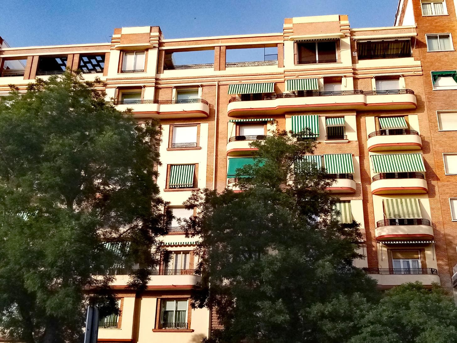 Y aquí ya si han humillado las fachadas, pero me encantan los toldos a rayas años 60,