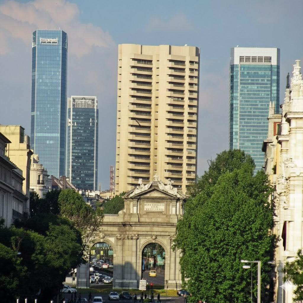 Y si en vez de verse una torre solitaria tras la Puerta de Alcalá… hubiese un par de ellas más rematando el skyline?