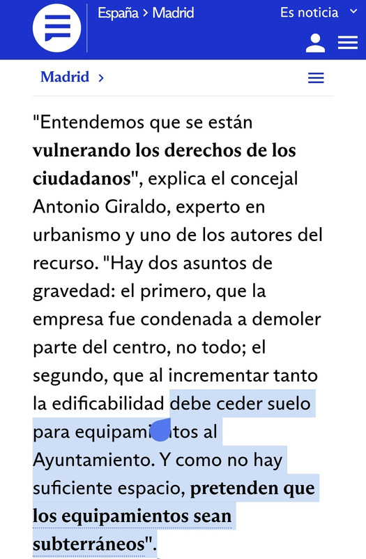 Aquí en Madrid el año pasado se intentó hacer esa misma superposición de zona verde y equipamiento en Méndez Álvaro y la oposición ya dijo que llevará el plan a los tribunales con el aplauso de algunos en este mismo foro.