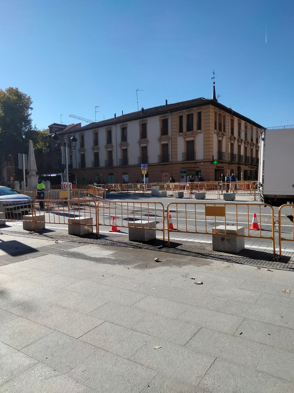 La zona del Quiosco lleva abierta desde las Ferias y Fiestas, ahora otra vez sin poder disfrutarse por la instalación de la pista de hielo. Hay una zona que no has enseñado que está casi terminada, que es la de la zona central. No lo he podido fotografiar, pero ya se ve un buen hueco frente a la estatua de Cervantes sobre el pavimento, por lo que será para la instalación de la firma de Cervantes. Ambos laterales, la zona arbolada de la plaza, va a buen ritmo y se van a dejar las dos fuentes clásicas que tenía ya la plaza, junto con la nueva fuente de granito al lado del ayuntamiento.