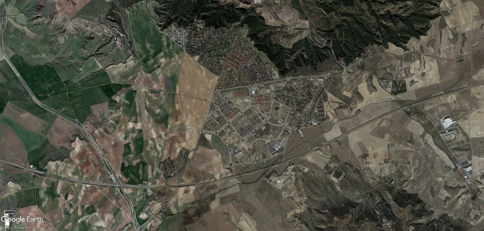 También me parece llamativo la sucesión rápida de obras la primera década del siglo (autopistas, carreteras, tramas urbanas nuevas) con la quietud que aparece, en vista satelital, los últimos años. Cualquier diría que esas ciudades han dejado de crecer si se fijara solo en ortofotos satelitales.