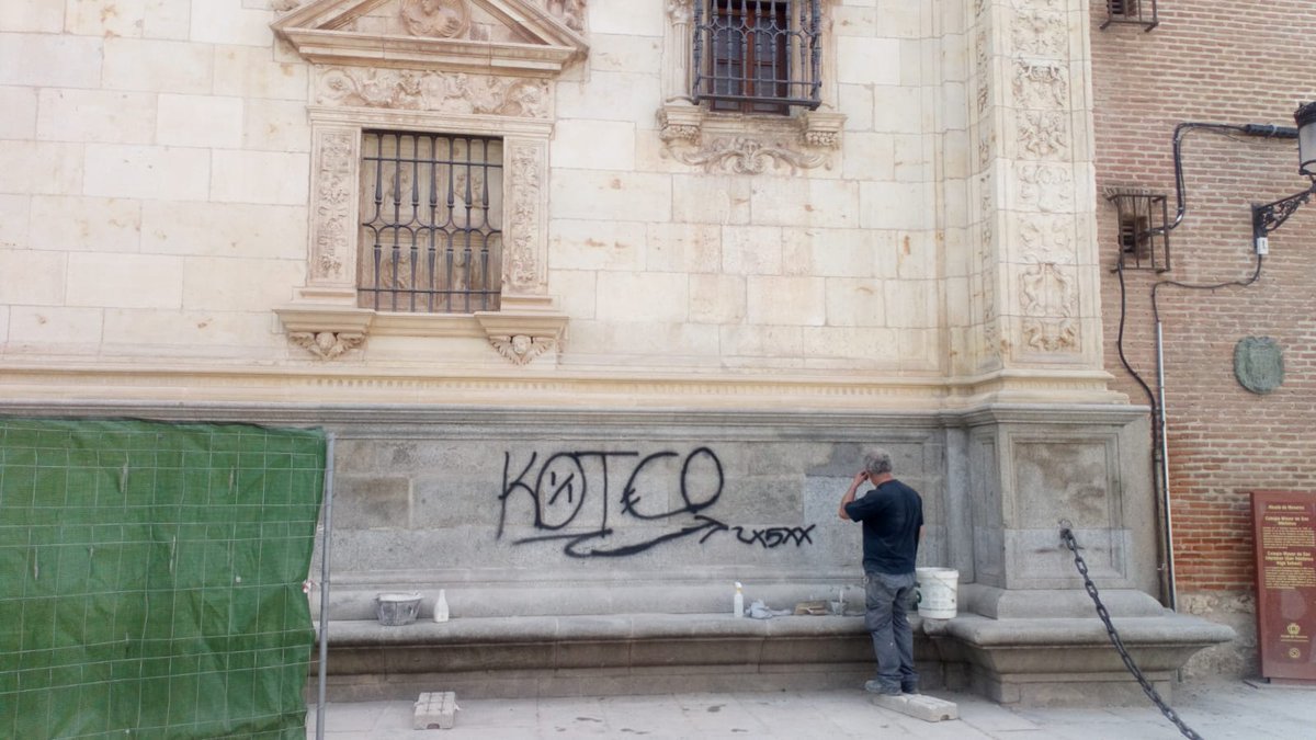 En Alcalá también hay degenerados a los que les da por grafitear la fachada de la Universidad Cisneriana…