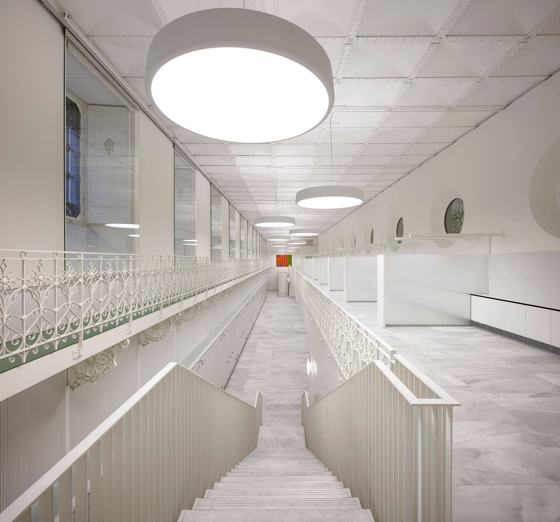 El estudio Paredes Pedrosa tiene una larga historia con el Banco de España. Ha participado en rehabilitaciones del edificio desde el año 1986. A lo largo de estas tres décadas, Paredes Pedrosa ha habilitado una sala de exposiciones, construido un núcleo de comunicaciones verticales, entre otros. Su última colaboración en la sede, en el año 2015, ha consistido en la rehabilitación del antiguo Archivo General, junto al paseo del prado.