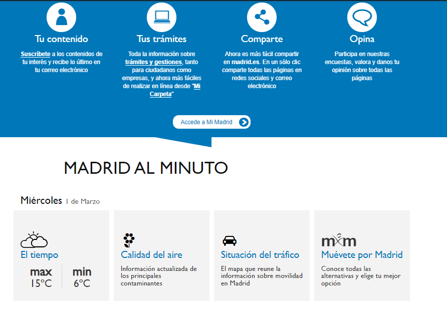 Espeluznante. En 10 años han hecho un único cambio estético (cambiar el tono de azul y… qué más?). Han desaprovechado el momento de actualización del imagotipo, que habría sido una muy buena ocasión para darle un lavado de cara (y no solo cara… también estructural) de los puntos de acceso digitales del ayuntamiento.