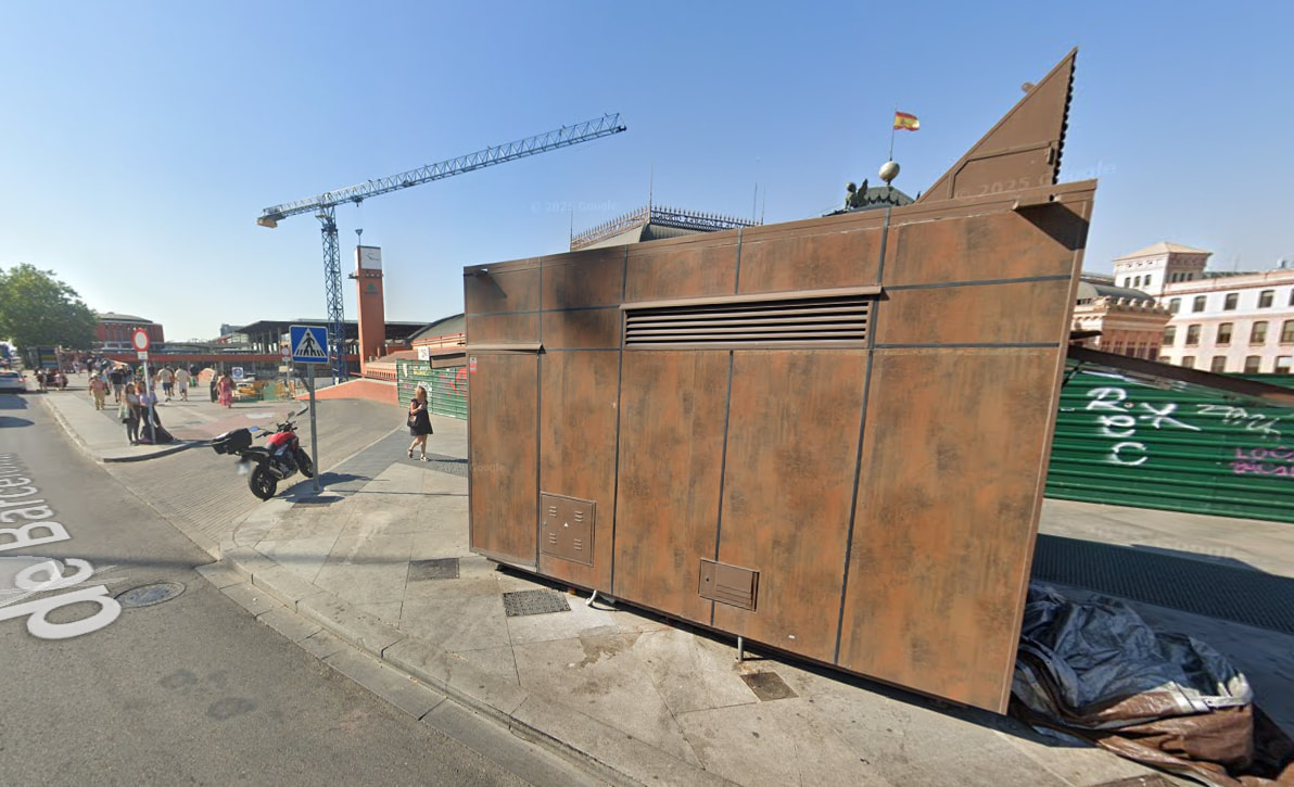 El cableado se enterró tras abrir una zanja. Sigue estando ahí, pero ya no se ve. Como debería haber sido desde que se instaló ese puesto.