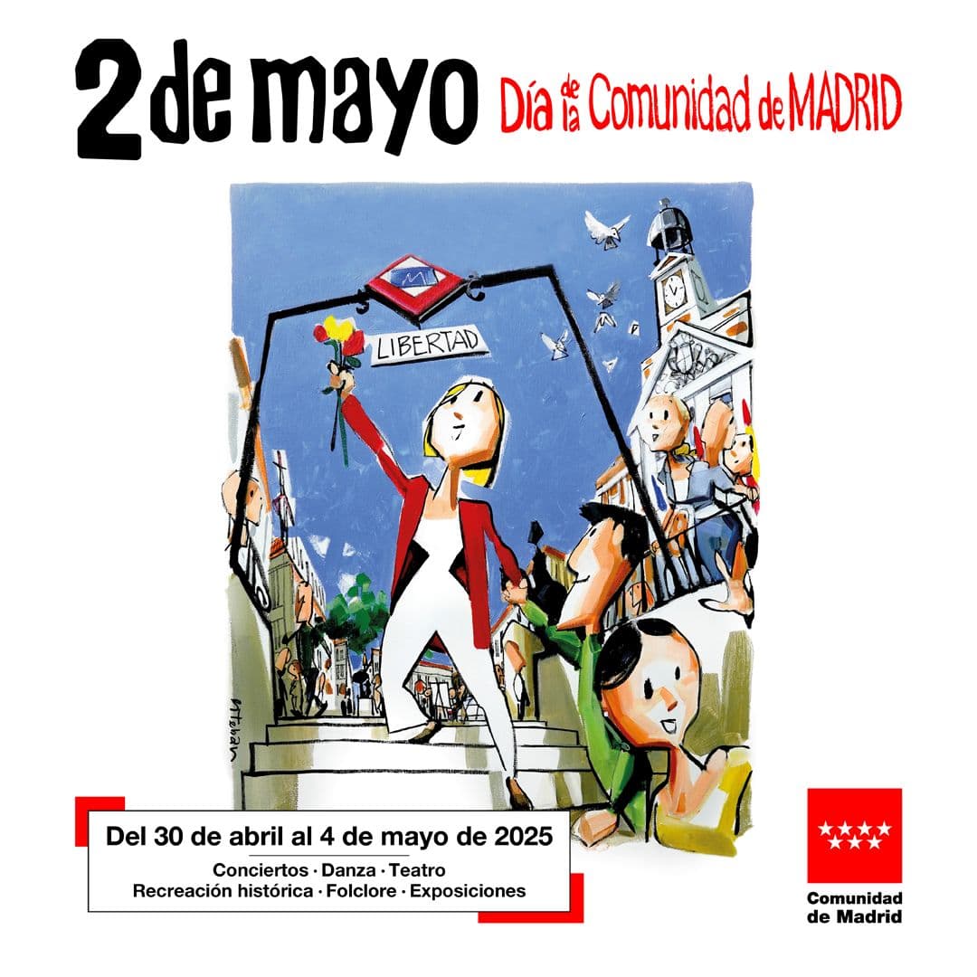 Me ha llamado siempre la atención el poco uso que se le da a la bandera de la Comunidad de Madrid en el día de la Comunidad de Madrid. Como en el cartel, que hay más banderas de España que de la CAM. Incluso el logo del metro tiene más presencia. ¿Será que no tiene arraigo? ¿Demasiado modernita?
