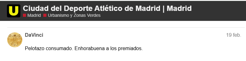 Mi comentario sobre el pelotazo consumado del Atleti no era por construir equipamientos de ocio en terrenos deportivos, sino por explotar a título privado unos terrenos públicos y lucrarse con ellos diciendo, además, que si intención era fomentar el deporte en el barrio o algo así.