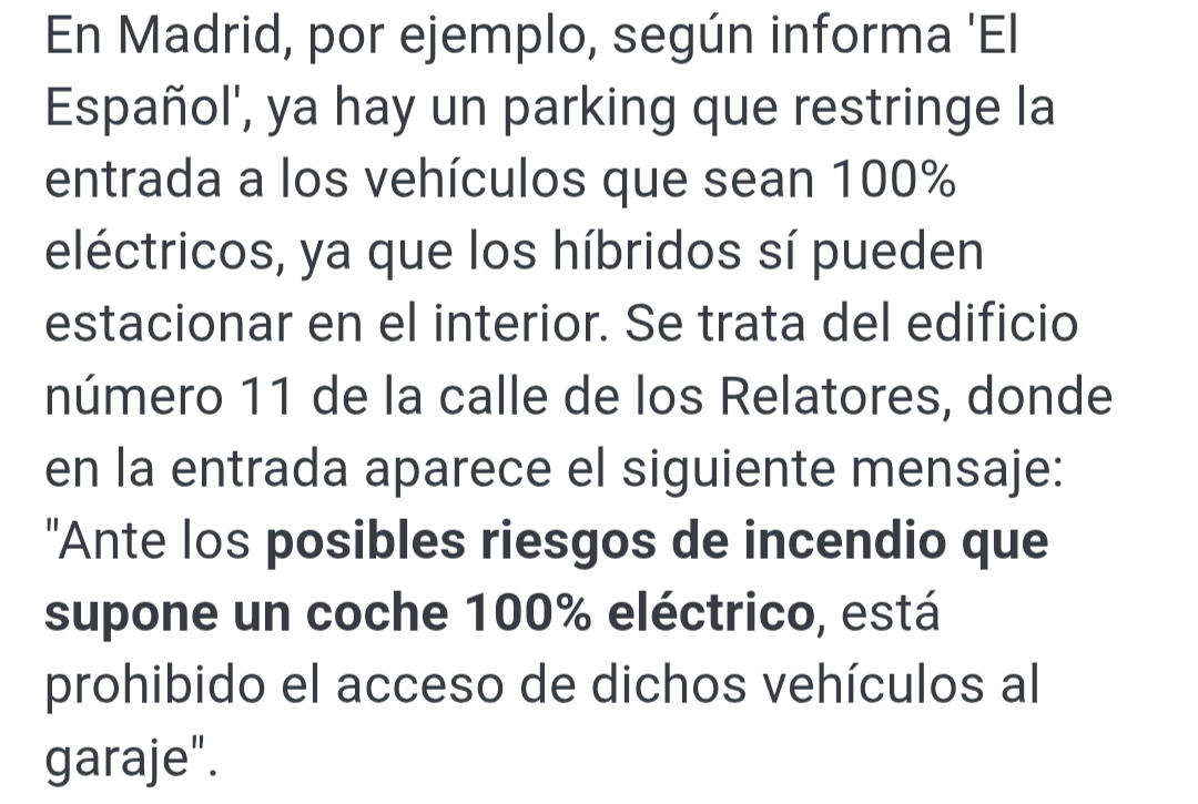 Bueno. Pues según las noticias ha habido en los últimos meses más incendios de coches recargando electricidad en Madrid que coches de combustible en gasolineras….