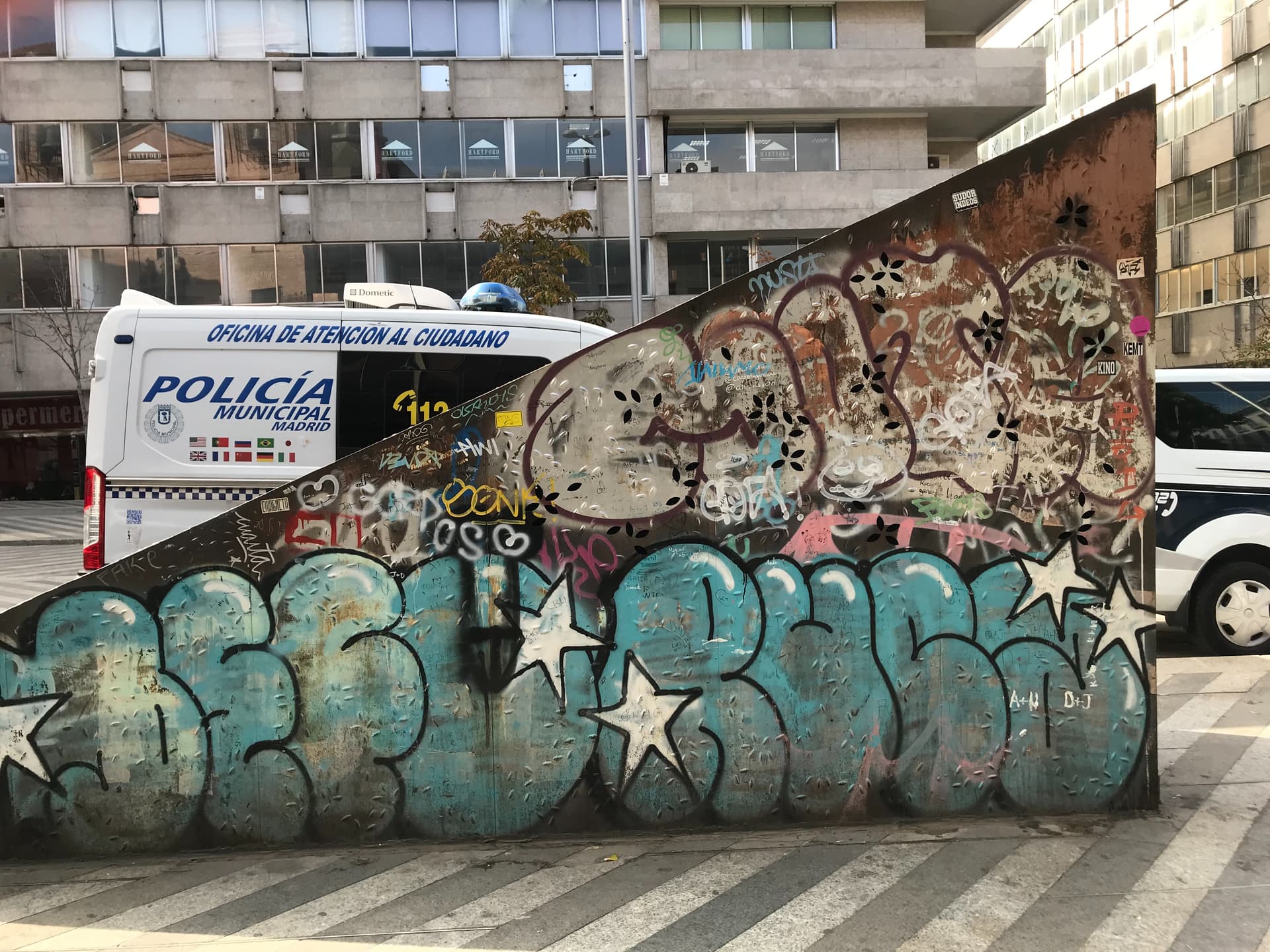 ¿Y por qué crees que habría menos grafiti, considerando no se ha producido un incremento, ni siquiera temporal, de las denuncias? No sé… ¿hay escasez de esprays de pintura? ¿de repente los grafiteros se han reformado y han aprendido a valorar el patrimonio urbano? ¿se han aburrido? ¿o simplemente se han asustado ante las repetidas declaraciones de guerra por parte de Almeida y han huido despavoridos (Almeida es que impone mucho cuando se pone serio)? No sé, puede ser, pero no veo ninguna razón muy convincente…