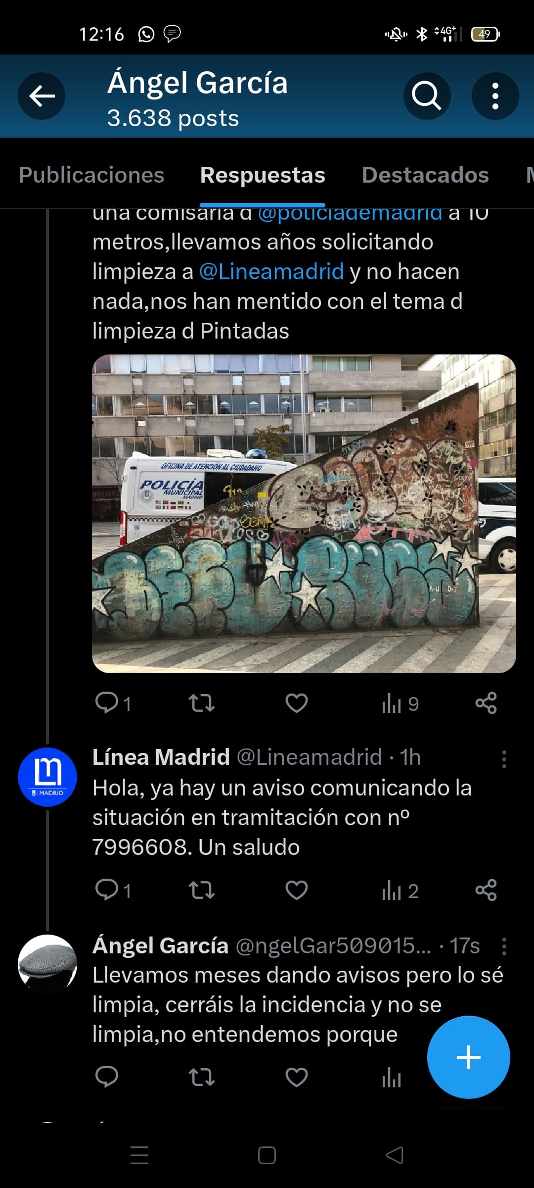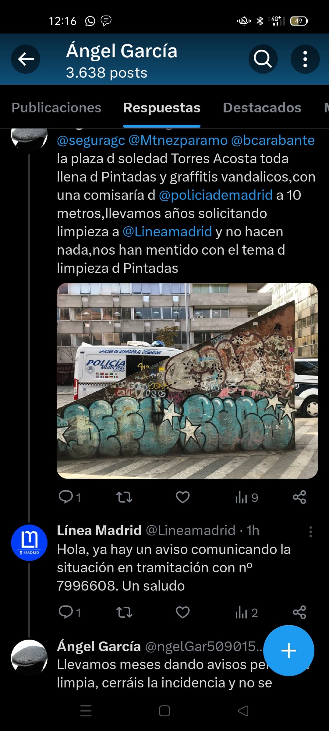 Que los vecinos tengamos que estar denunciando la pintadas tiene narices. Tendrían que ser los municipales los que diesen el aviso. Si no son capaces de impedir que se hagan, que al menos hagan eso.