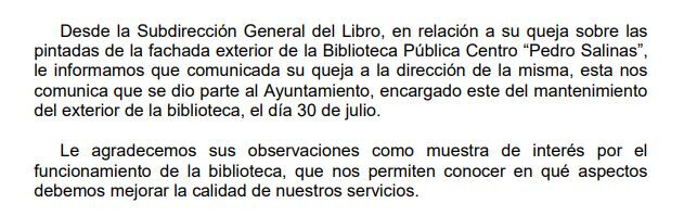 Me respondieron en la biblioteca lo siguiente tres días después: