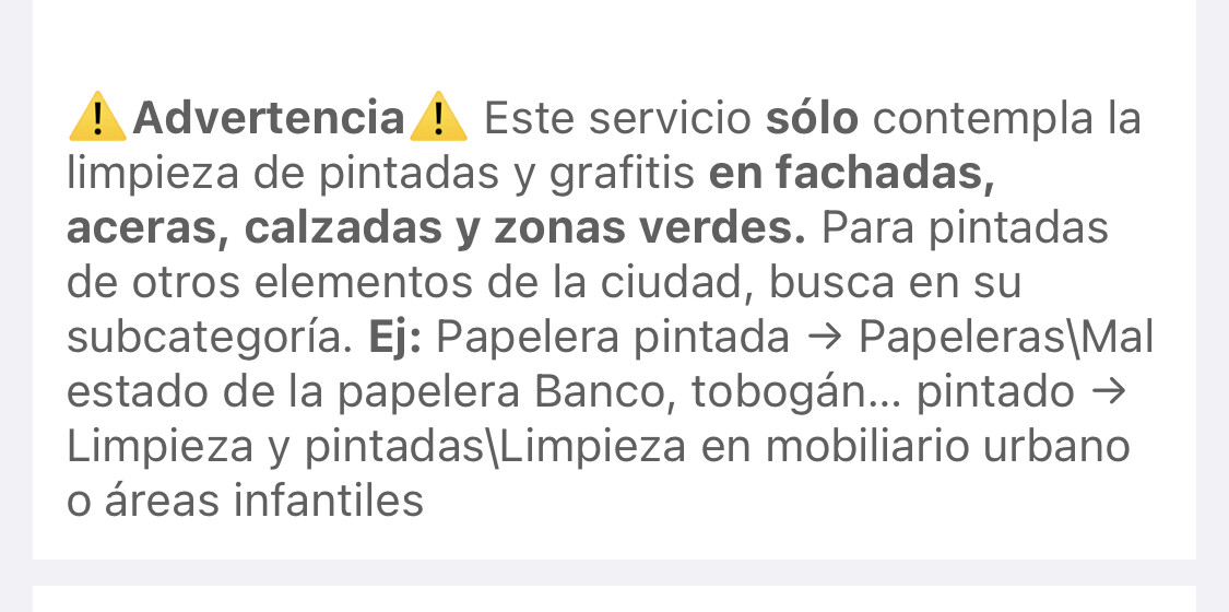 Lo digo por que en el mapa de avisos no me aparece ninguno relacionado con graffitis, y quizás me esté equivocando de canal de petición.
