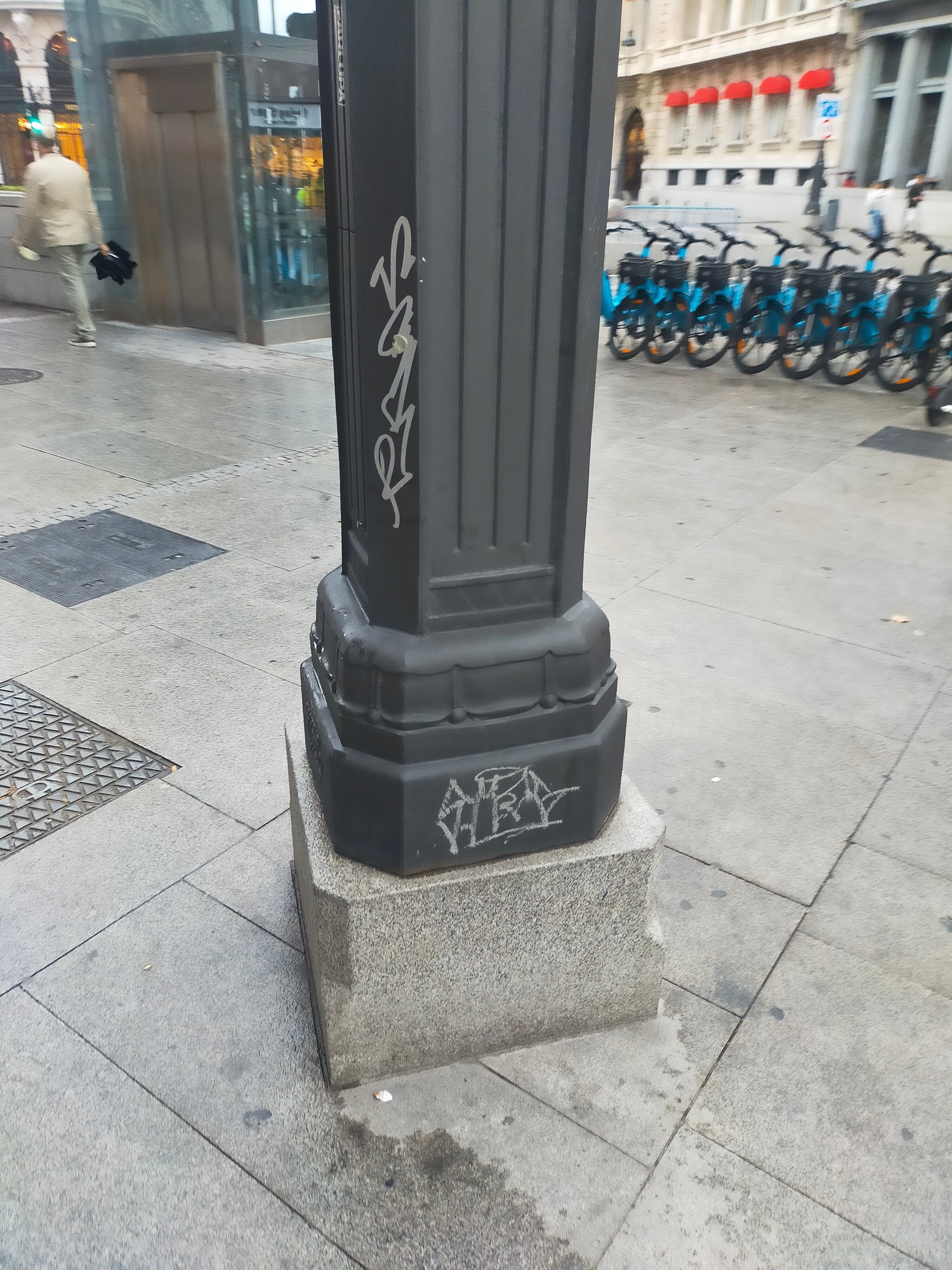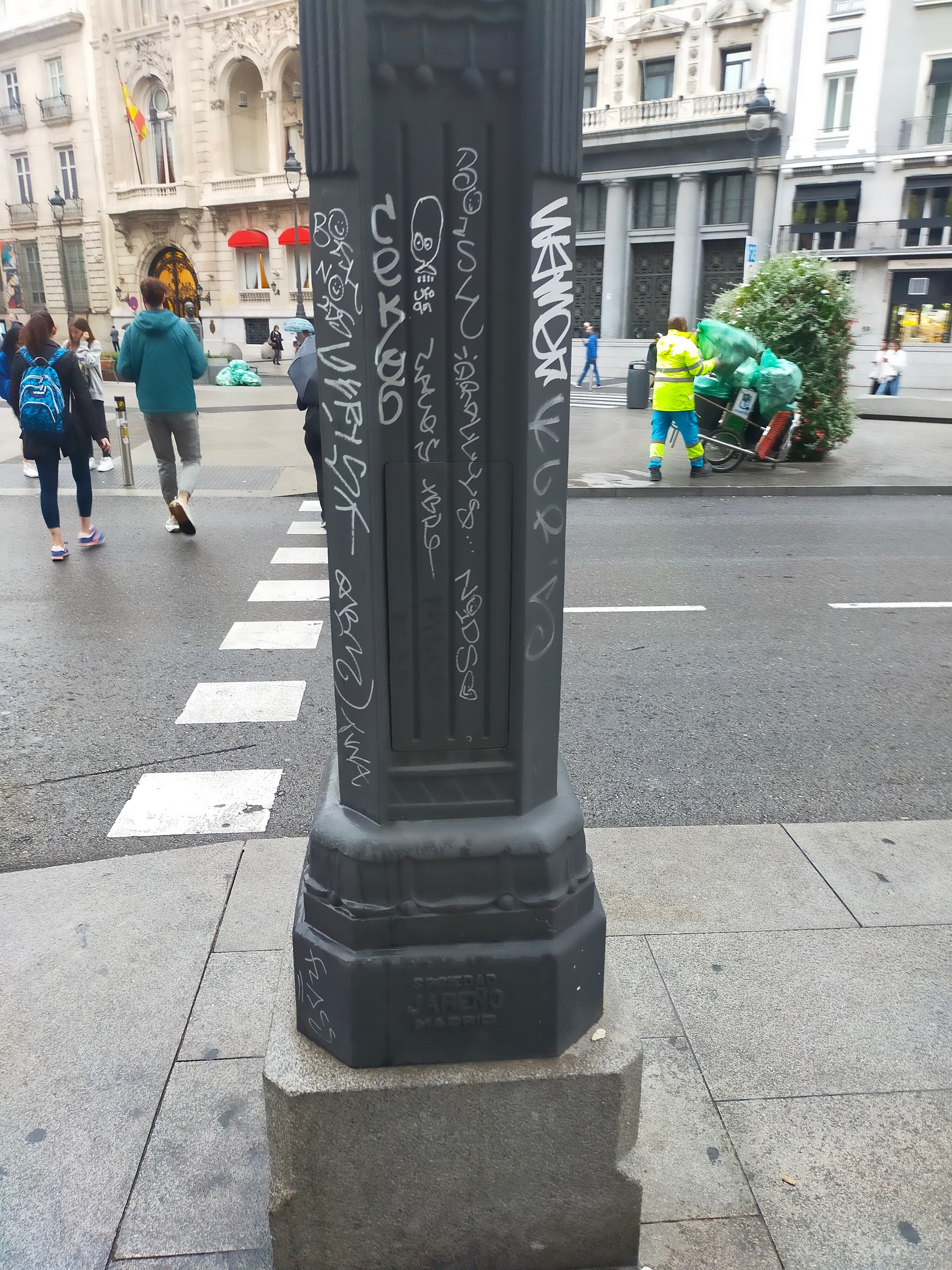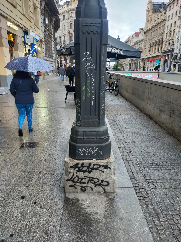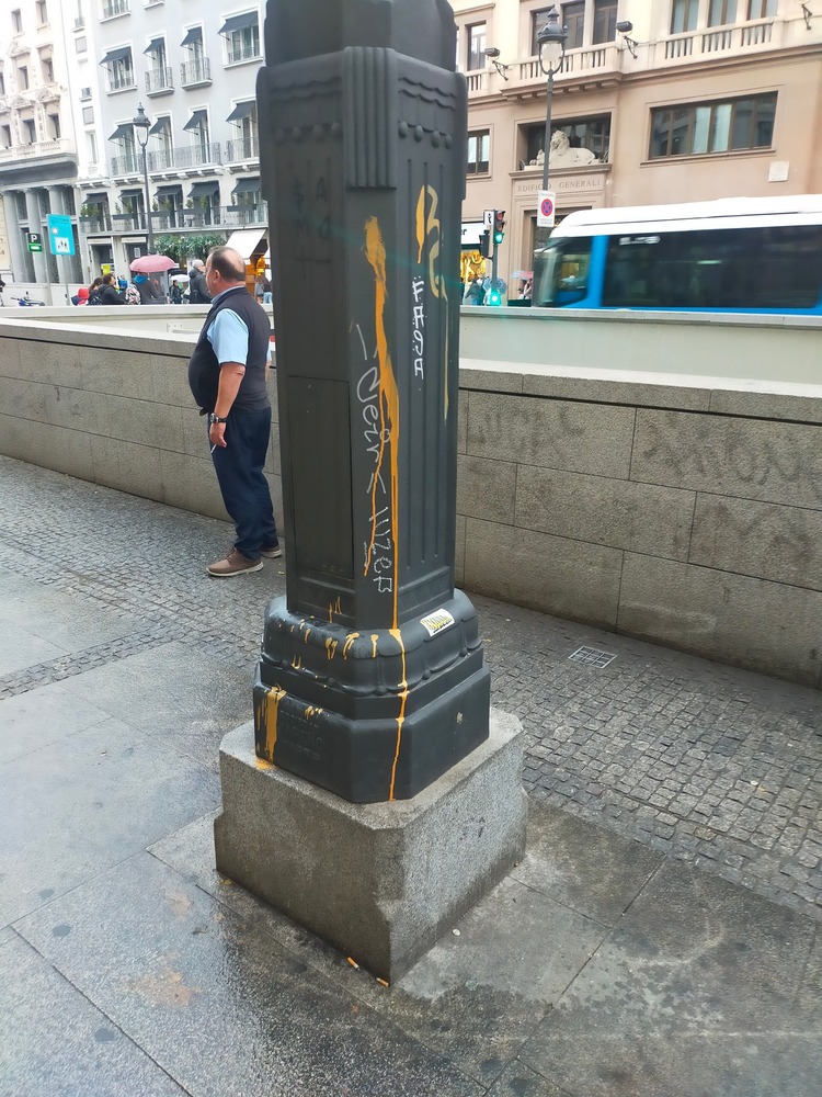 Las farolas de Alcalá cada vez más vandálizadas…con todas las que han puesto como no se limpien… A a quedar la calle muy “guapa”…