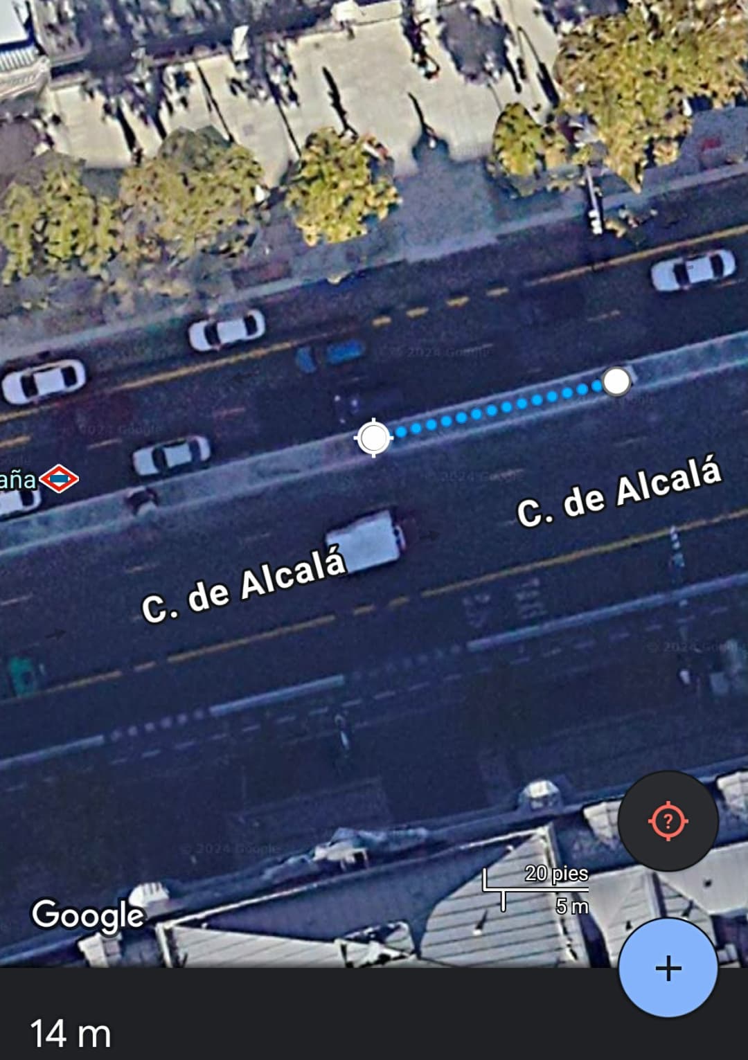Bajé el martes en coche desde la puerta de Alcalá hacia Cibeles en dirección Gran Vía…. Y es que en la bajada por Alcalá y al rodear Cibeles…. Ves al fondo una fila de ‘miles’ de farolas juntas en la mediana que no tiene ningún sentido.