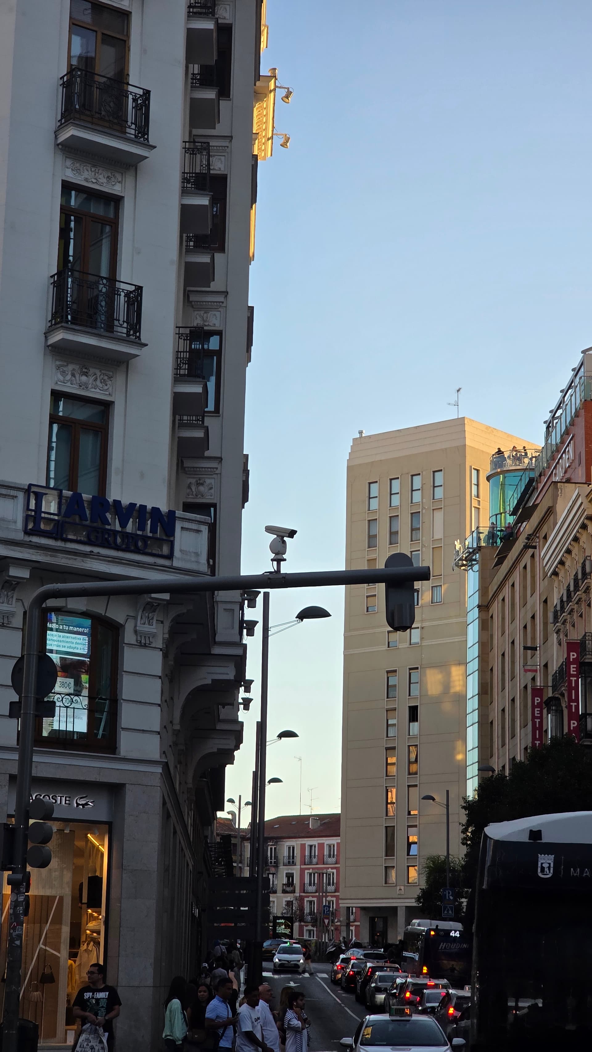Precisamente en Gran Via no veo que sobren farolas y los semáforos entiendo que son los que se necesitan para el tráfico.