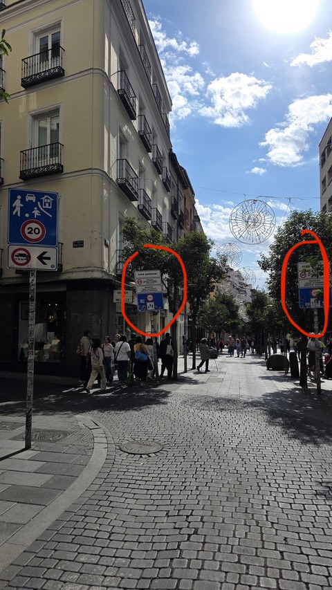 Entre otras muchas cosas, una de las que resulta incomprensible es que pongan la señal tanto a la izquierda como a la derecha, como si la calle tuviera 30 metros de anchura, con una es más que suficiente.