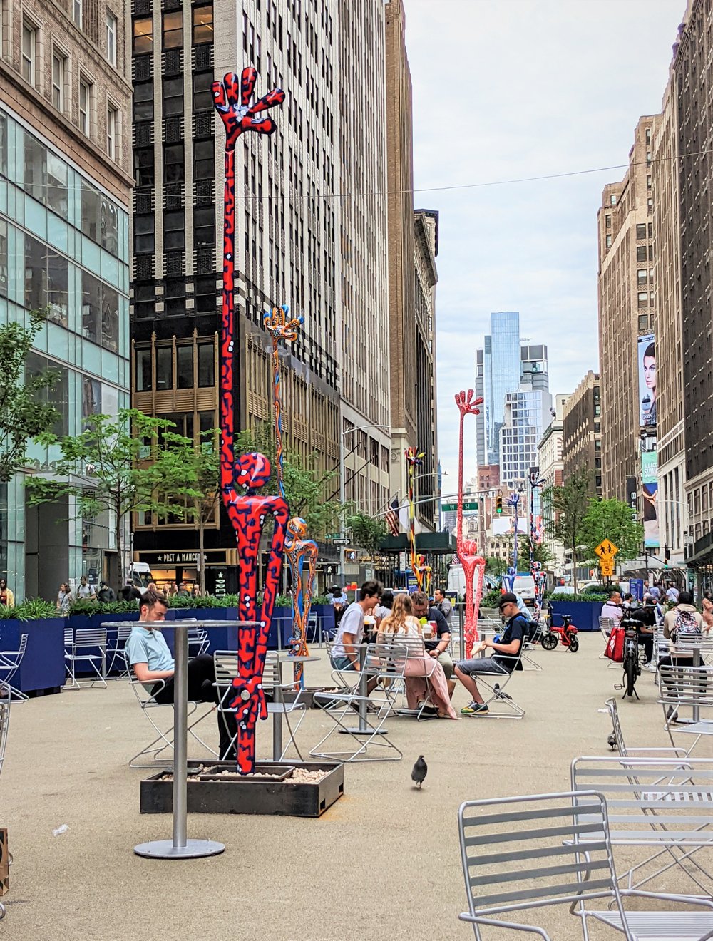 La verdad, yo no lo conocía hasta hace unos días, pero lo de Nueva York creo que tiene relación con las meninas. Una misma estructura que parece una mala interpretación de las figuras de Keith Haring sobre las que se aplican distintos acabados coloristas a mi modo de ver bastante torpes.