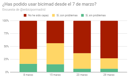 Mi experiencia, paseando todo el fin de semana, es la de ver todas las estaciones de Bicimad vacías. Si acaso, una bici mal anclada en alguna de ellas.