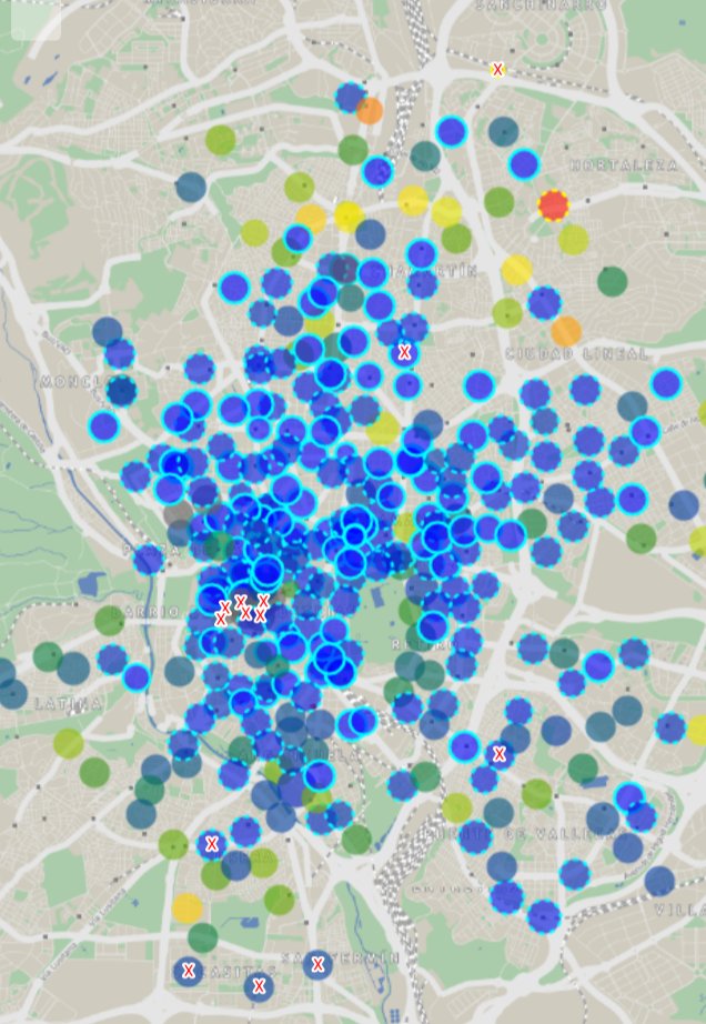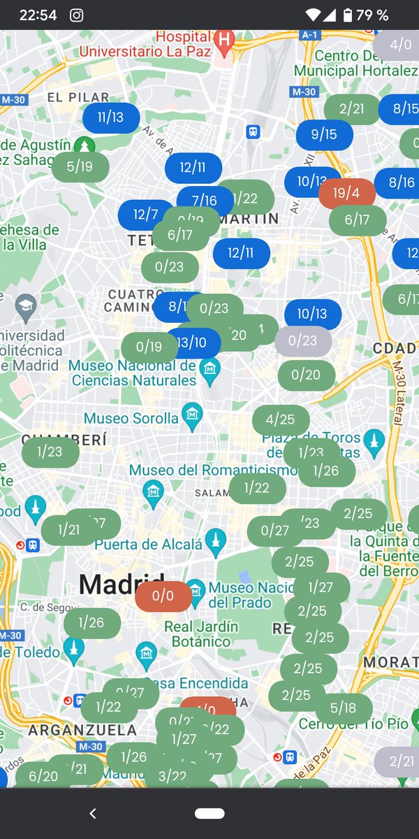 Lo primero, todas las estaciones paralelas o inmediatas a la Castellana tienen un número suficiente de bicis, entre 5 y 10, más o menos, todas nuevas (son estaciones nuevas). En cuanto te sales un poco de la zona, pachasco.