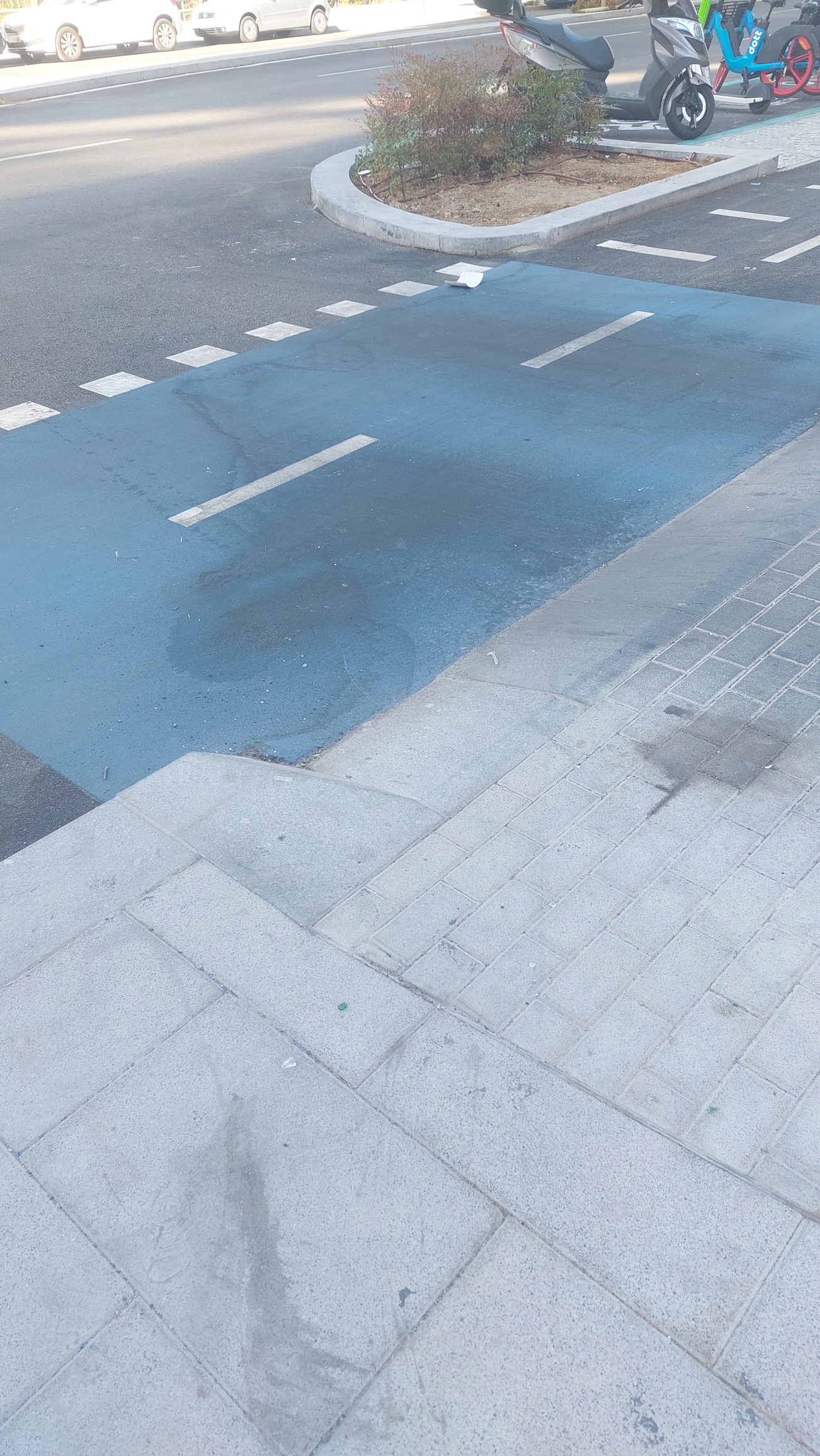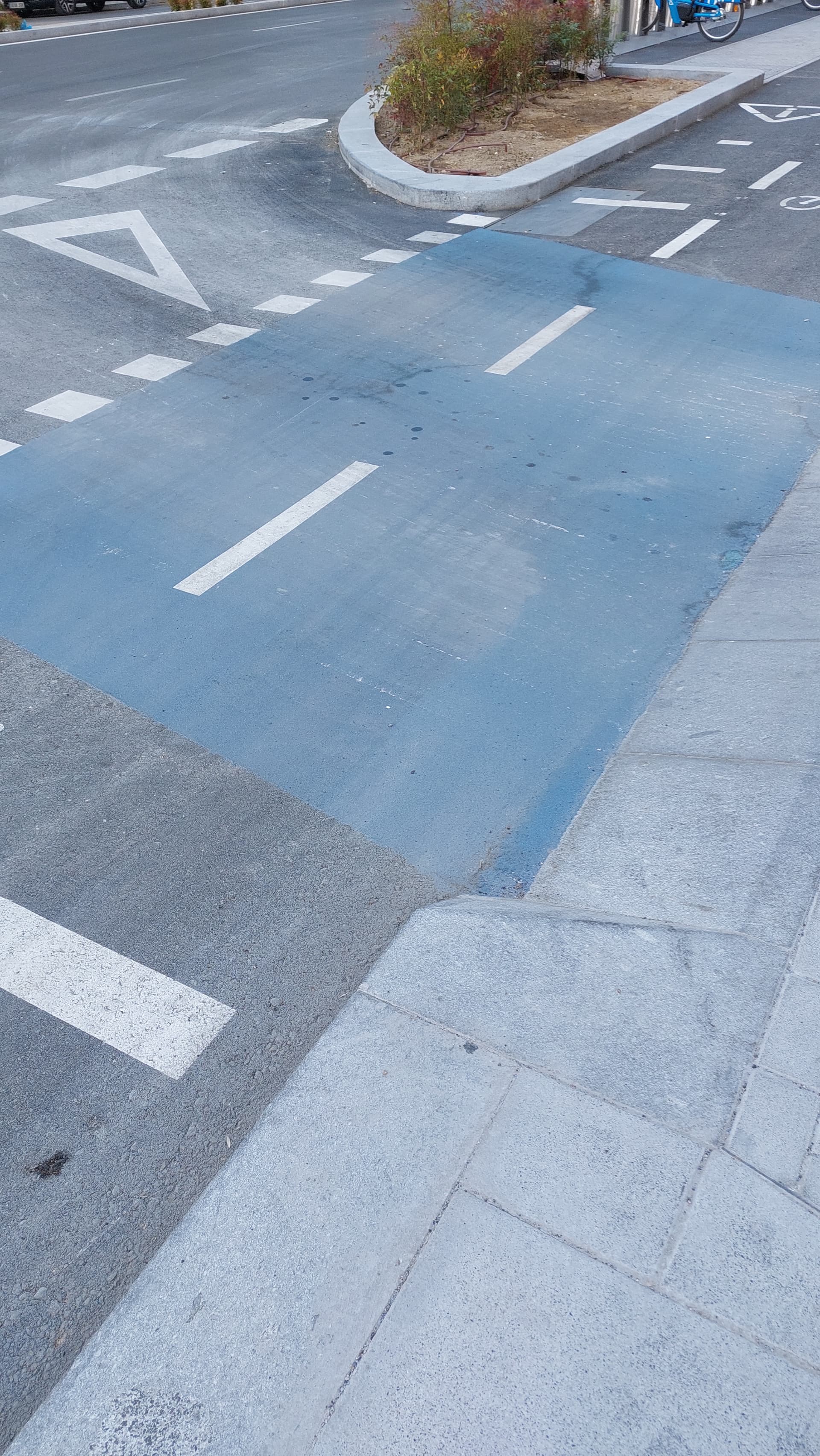 de General Perón. La durabilidad de la pintura azul es inversamente proporcional a la cantidad de coches que pasan por encima: