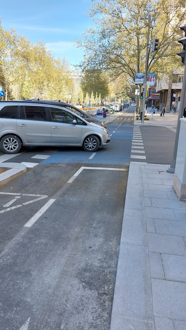 La calle General Perón ha quedado bastante agradable, muy espaciosa. El carril bici, pues bueno, suficiente. Es un carril bidireccional, que acaba al final de la calle, en la nada. Lo peor con diferencia son las intersecciones: