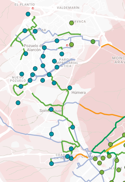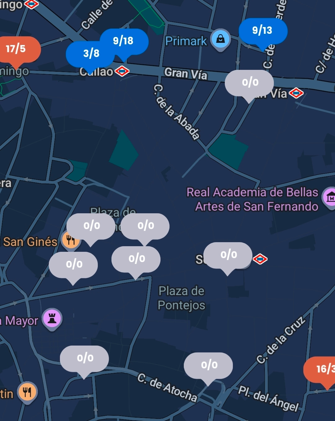 Además, no entiendo cuáles son los baremos de un color u otro. En tu foto podemos ver que una estación con 7 anclajes libres sale en rojo, pero otra justo al lado con 8 sale en azul.