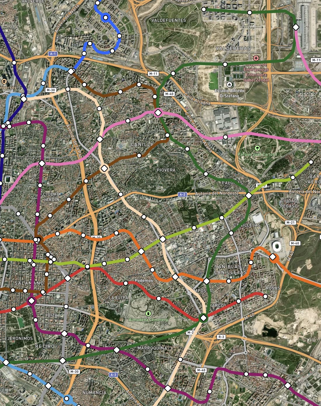 Lo que no me convence de tu propuesta es que se repita el trazado Pueblo Nuevo - Ciudad Lineal, yo creo que sería mejor ir hacia García Noblejas y así se cubre toda esa zona entre la L5 y la L7 que no tiene metro, y como han puesto antes también uniría con Canillejas que ojalá en un futuro tenga cercanías