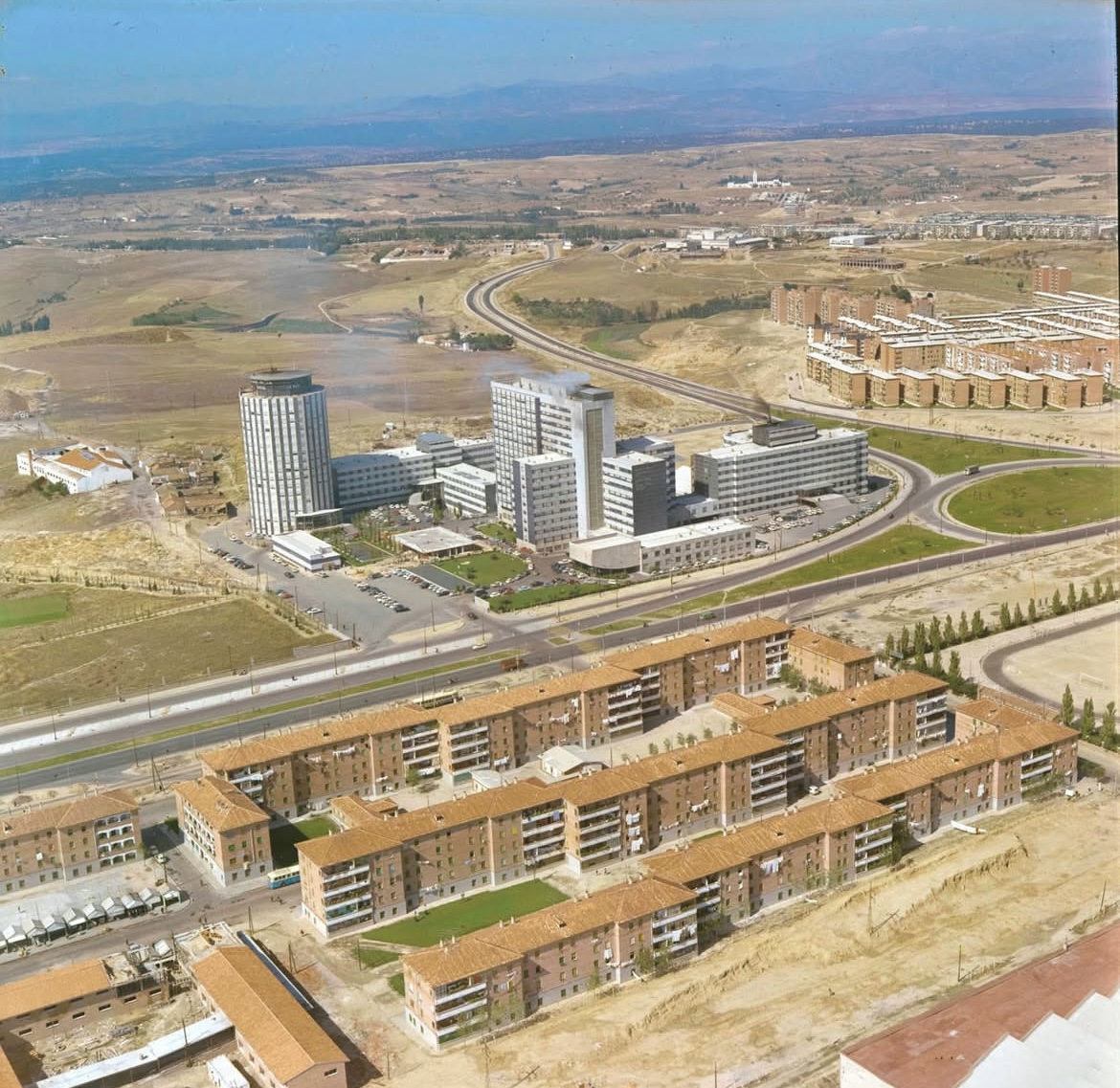 Me sorprende también la evoulcuón del viario en esa zona, con el extraño acceso a Madrid por la carretera de Burgos hasta que no se resolvió el nudo Norte en 1975 (unos 8 años con una autopista muriendo en una calle) o el eje de lo que entonces era Generalísimo como casi único vial del que “colgar” usos tan diversos como hospitales, ciudades deportivas, viviendas sociales,…