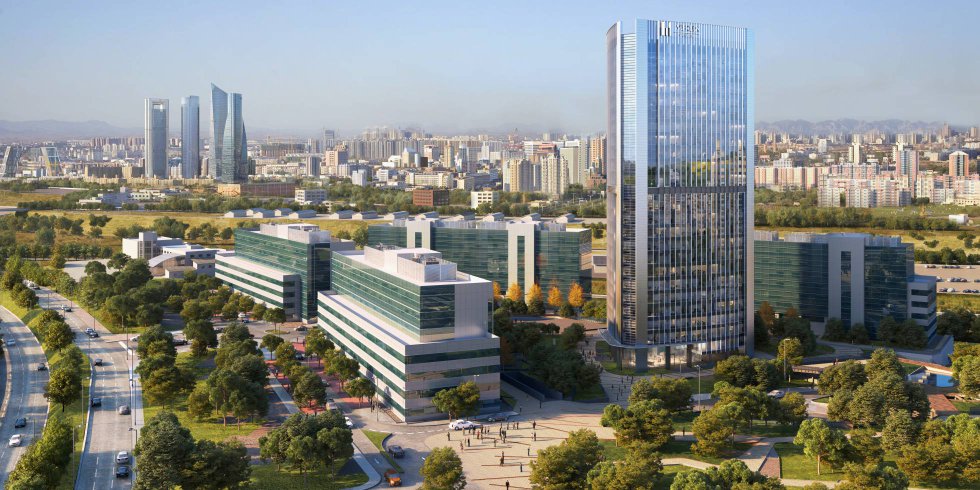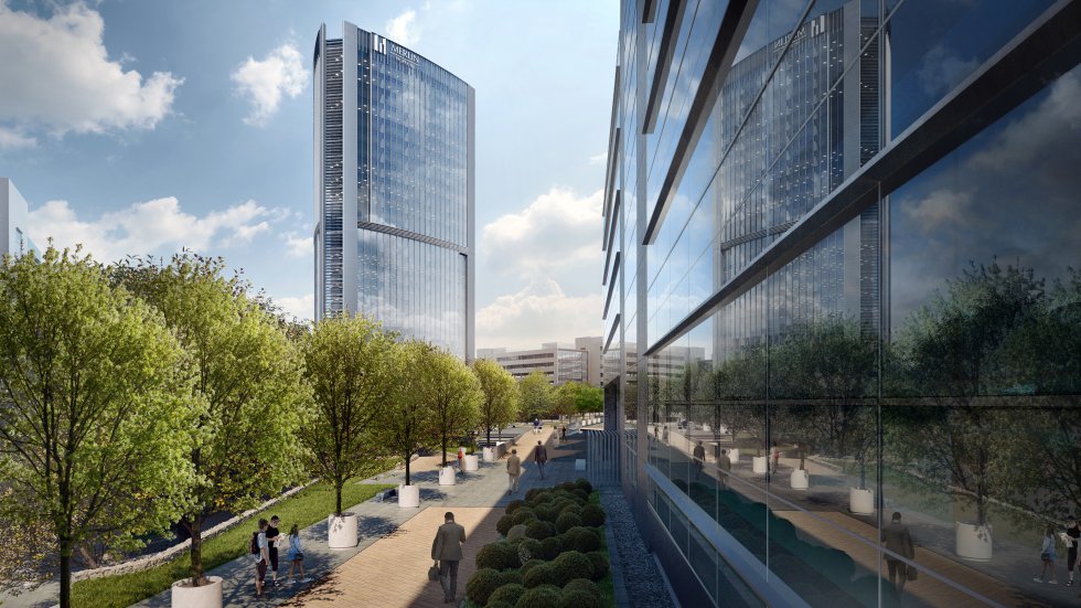 El proyecto inicial para Adequa contemplaba un complejo de oficinas con seis o más edificios, unos 123.000 m² de oficinas, garajes (2.915 plazas) y un torre de oficinas de 25 plantas con logo de Bami.