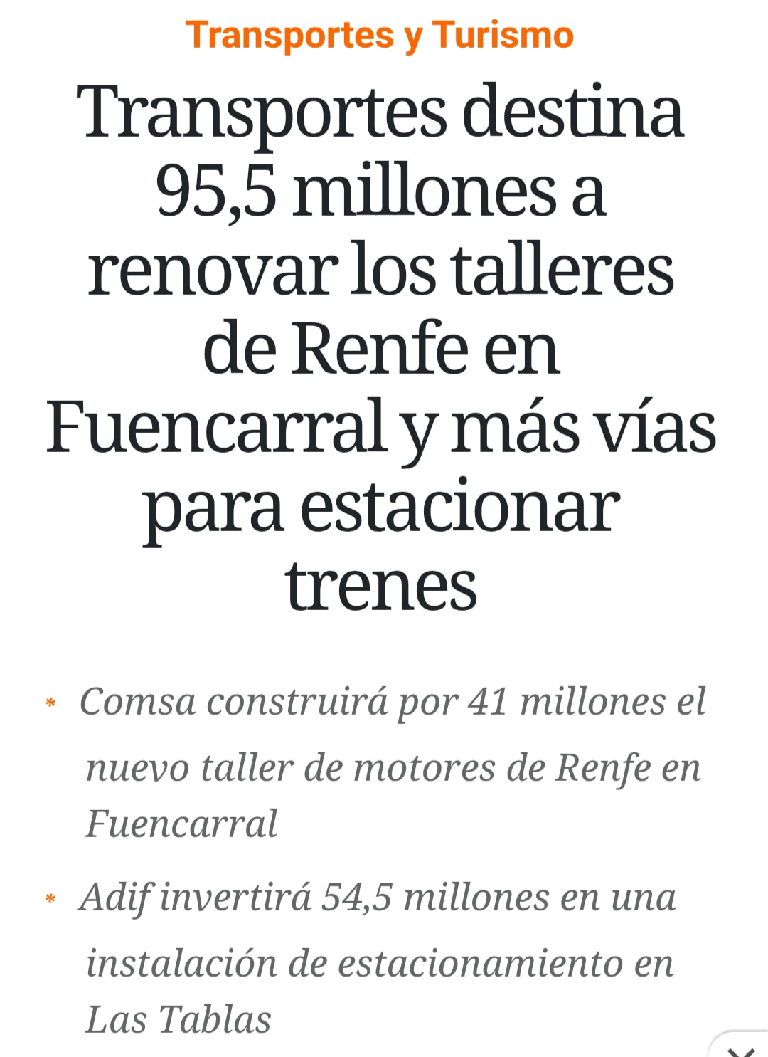 Pues de momento el año pasado anunciaron que los talleres de Renfe los iban a reformar.