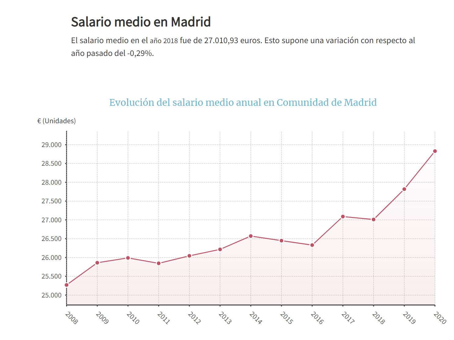 Finalmente, ajustandonos a Madrid, los salarios han subido de media 3600 euros anuales desde 2008: