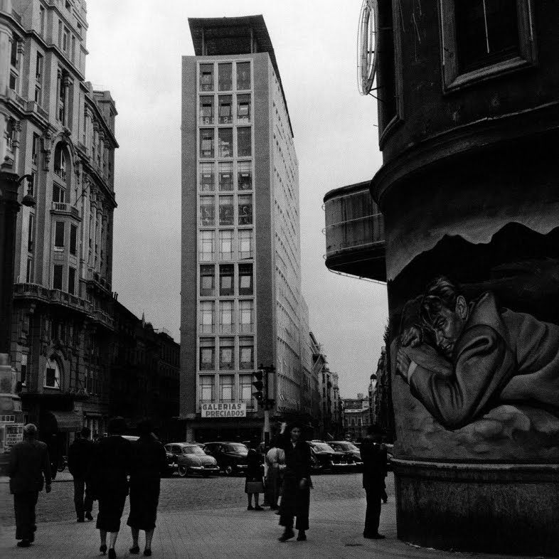 A mí esa fachada no me parece fea en absoluto, otra cosa es que choque en esa ubicación. Siempre me parecieron mejores los edificios de Galerías Preciados que los de El Corte Ingles, que en este caso empeoró lo que había con su reforma. Eran brutalistas pero con un plus de diseño que los de ECI no tenían. Contaron con arquitectos como Gutiérrez Soto, Corrales y Molezún y Olalquiaga para sus oficinas y almacén central en San Fernando de Henares (la joya de la corona a nivel arquitectónico)
