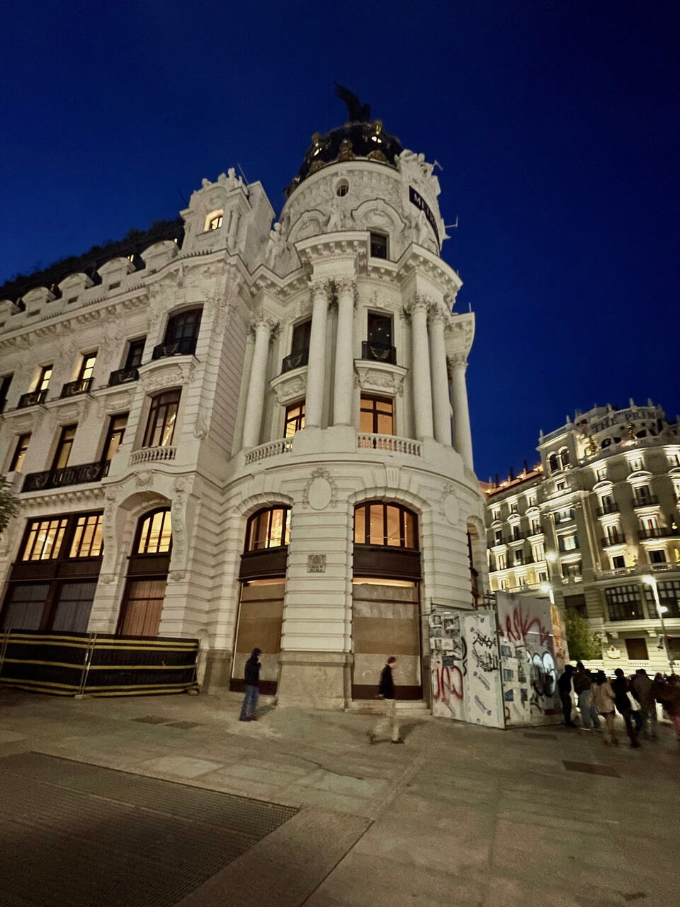 Arroz con guisantes, mejillones y cosas (los que la pusieron estaban pensando en una pella seguro). El edificio y chulapas.
