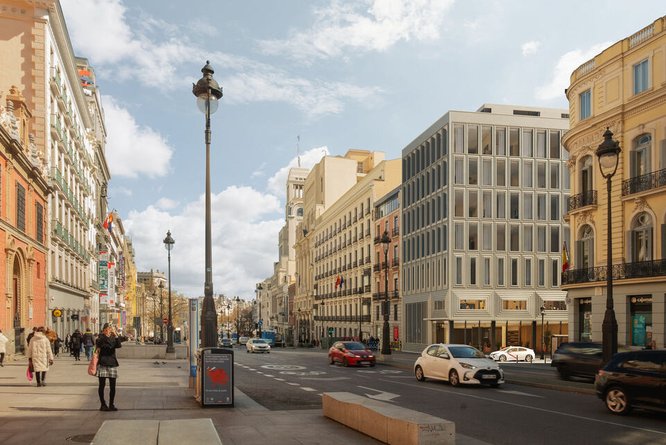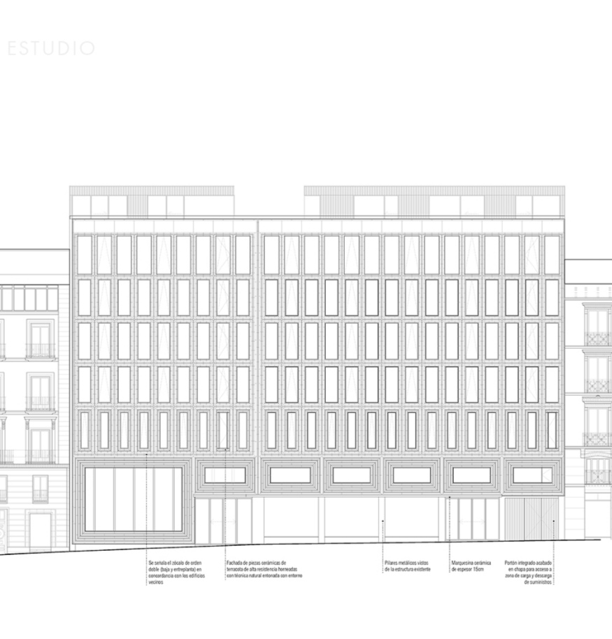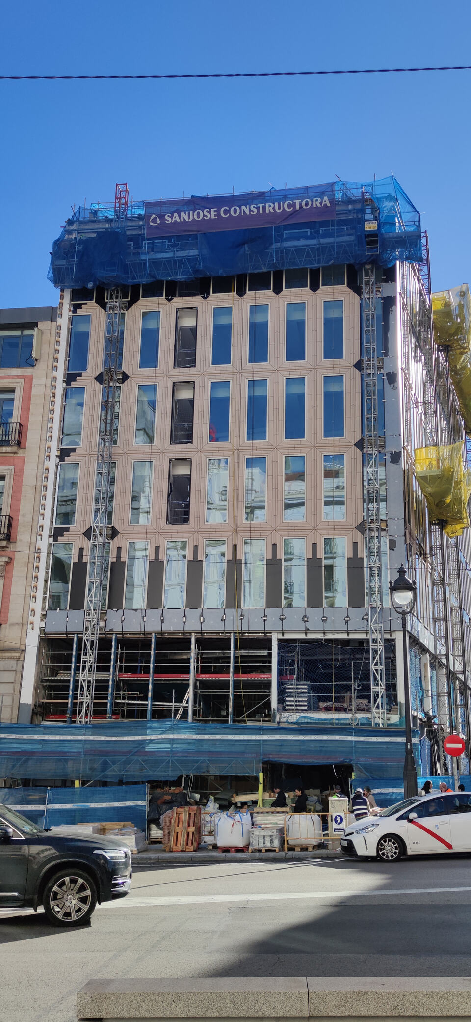 Pequeños avances en el hotel Nobu de Alcalá con Ceracedos, ya han comenzado en esta última a instalar las piezas cerámicas. A ver qué tal rematan la fachada en el esquinazo de las dos calles. Tiene un estilo muy americano de oficinas de Nueva York o Chicago (no en altura obviamente ). Esperemos que no desentone mucho con la zona. Un saludo.