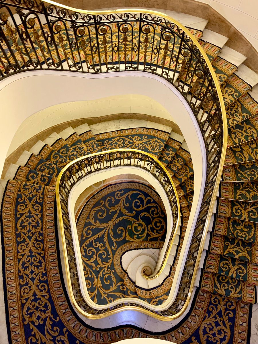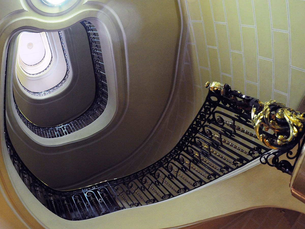 Entiendo que es porque esa escalera debe estar junto al acceso que hay al edificio en Calle Alcalá, que debía ser el principal.