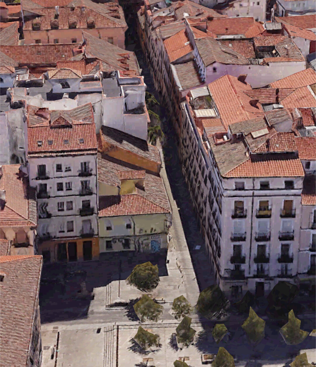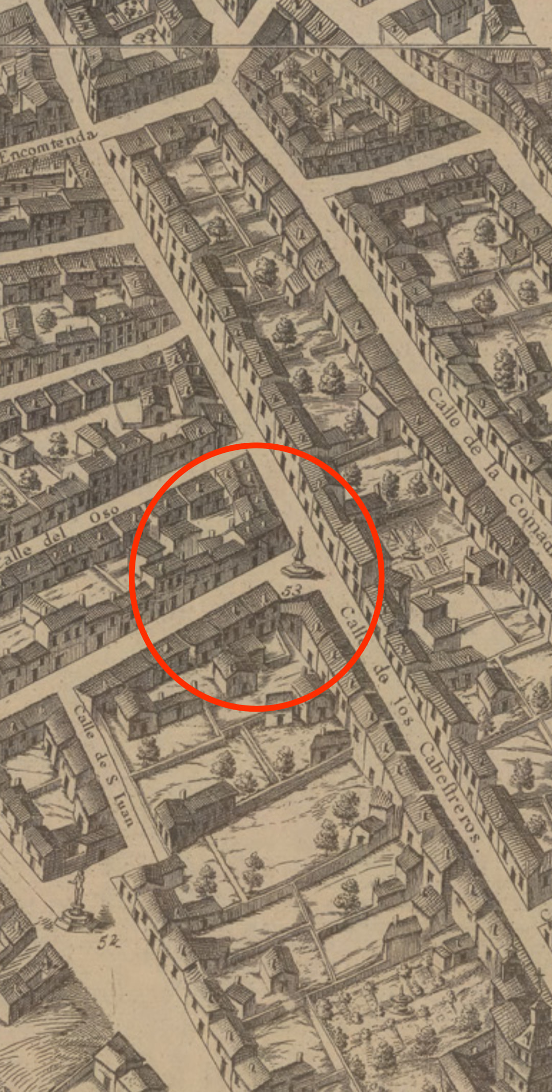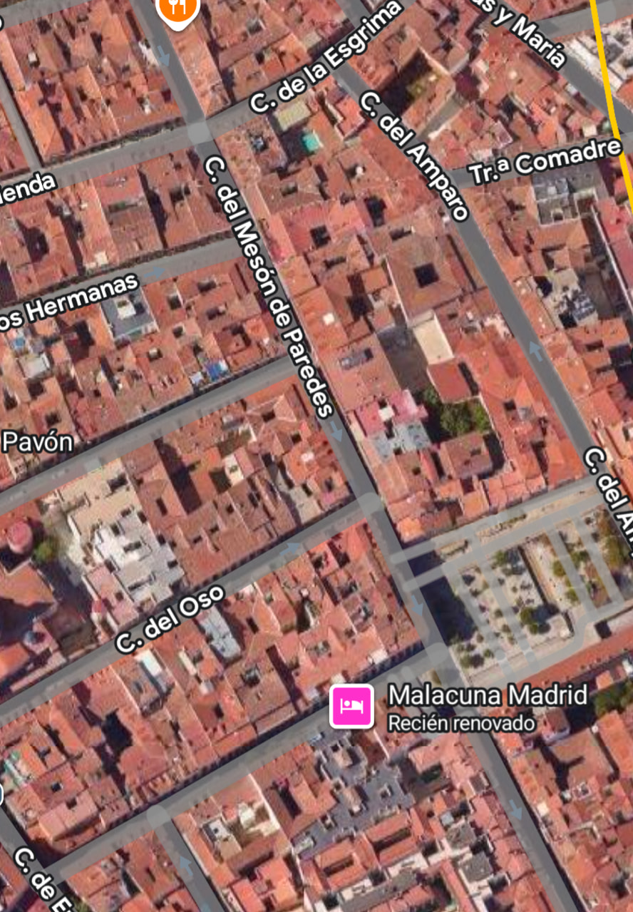 Y no te aventurarías mal, con toda probabilidad estén dibujaditas en ese plano, pues conforman la plazuela donde se ubicaba la fuente. Estas casas, desde que se construyeron, no se han derrivado jamás, pues si así hubiera sido, habrían sido sustituidas por edificios de otras tipologías como es lógico. Solamente por lo que se ve con el ojo, ya nos vamos 300 años hacia atrás mínimo. Unas casas que quizá vieron a Churriguera o Pedro de Ribera pasar como vecinos del barrio. Unas casas que han conocido, a lo mejor, a Carlos II, Felipe V, Luis I, Fernando VI, Carlos III, Carlos IV, José Bonaparte, Fernando VII, Isabel II, Amadeo I, Primera República, Alfonso XII, Alfonso XIII, Segunda Republica, sobrevivieron a la Guerra, a Franco, al desarrollismo…pero oye, Madrid necesita un hotel cápsula.