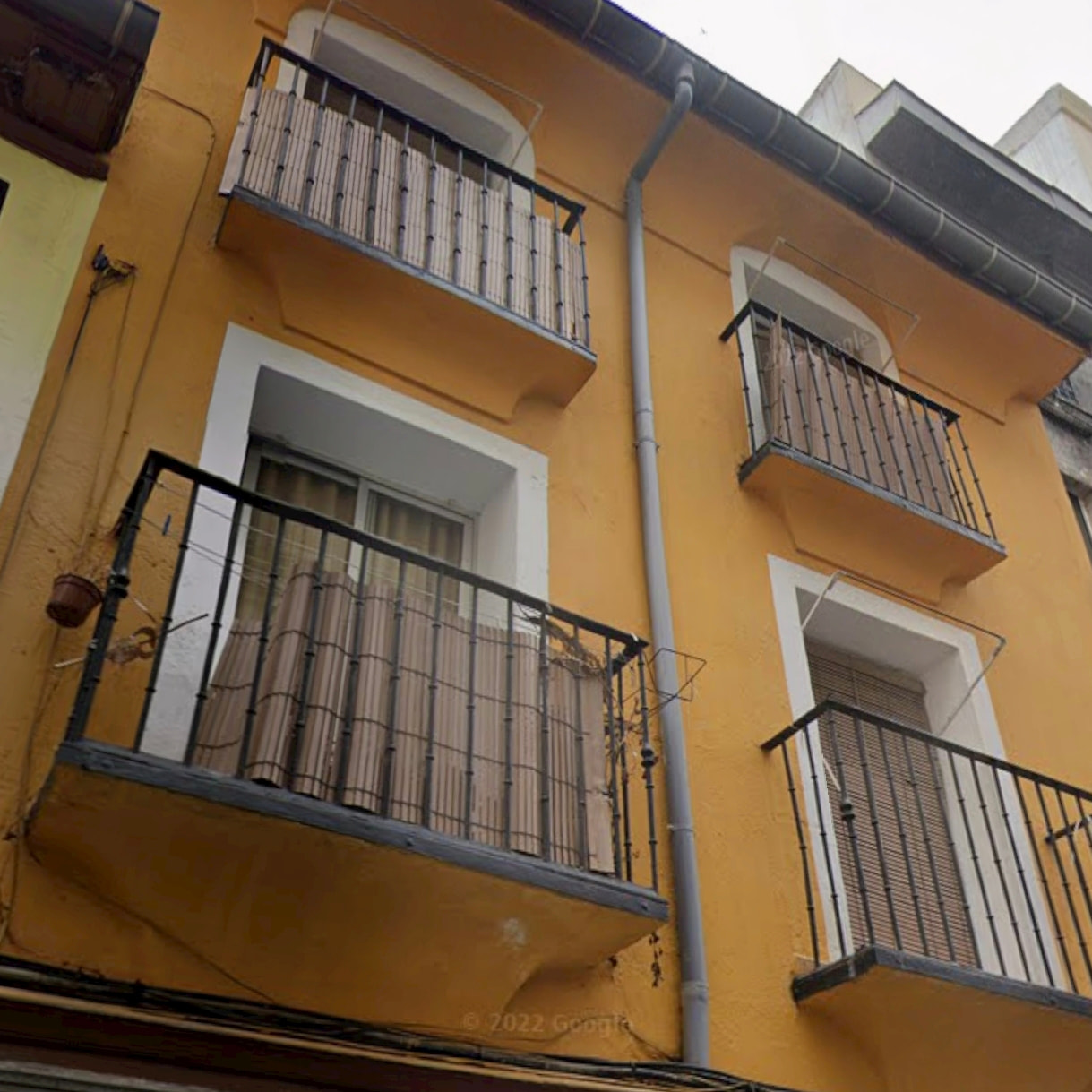 El de al lado, con balcones modificados, ventanas irregulares y altura, también puede ser de mediados del XVIII, antes desde luego que existieran las normativas regularizadoras impuestas por la la RABSF en el XVIII.